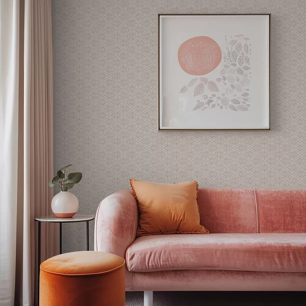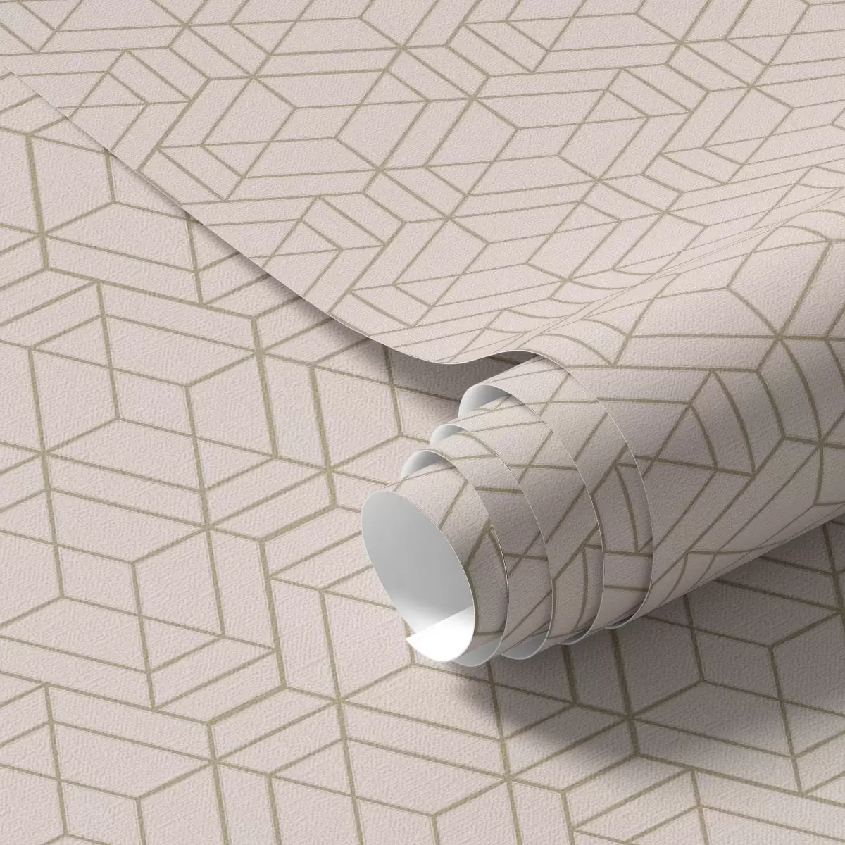 Tapetti Lämmin beige tausta, jossa hienoja graafisia kuutioita Nr. a01067v3