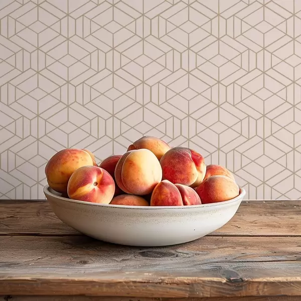 Tapetti Lämmin beige tausta, jossa hienoja graafisia kuutioita Nr. a01067v3