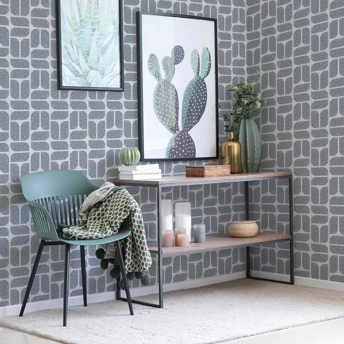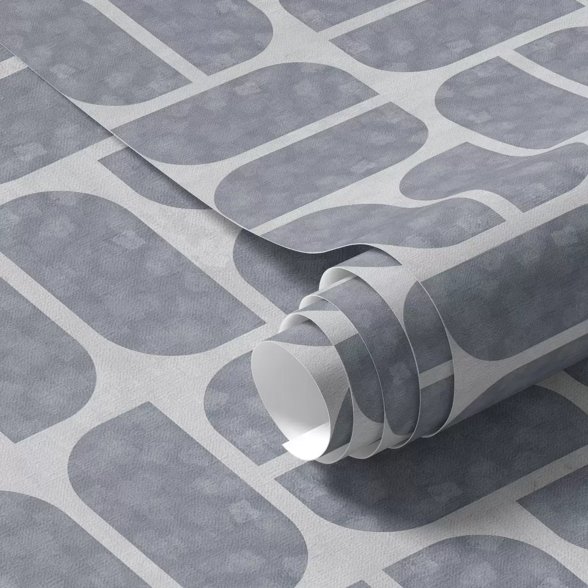 Tapetti Harmaa mosaiikki, jossa vuorottelevat pyöristetyt ja suorakulmaiset muodot Nr. a01069