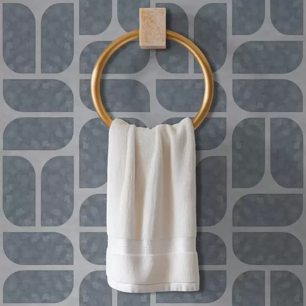 Tapetti Harmaa mosaiikki, jossa vuorottelevat pyöristetyt ja suorakulmaiset muodot Nr. a01069