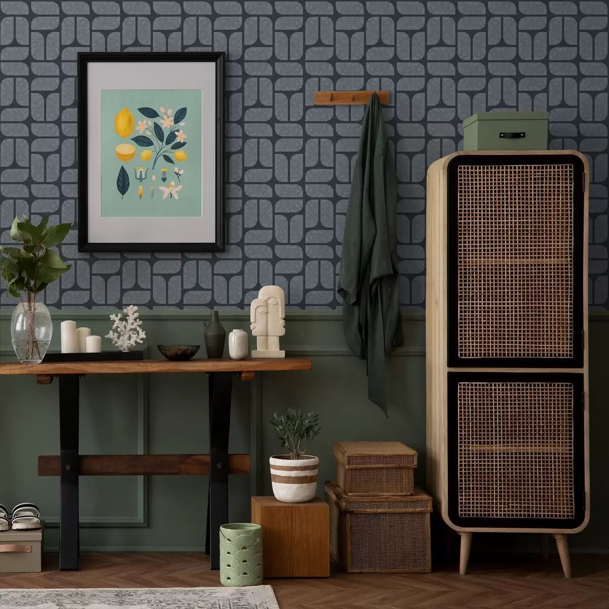 Tapetti Tumma tausta, jossa harmaa mosaiikki pyöristetyistä moduuleista Nr. a01069v1