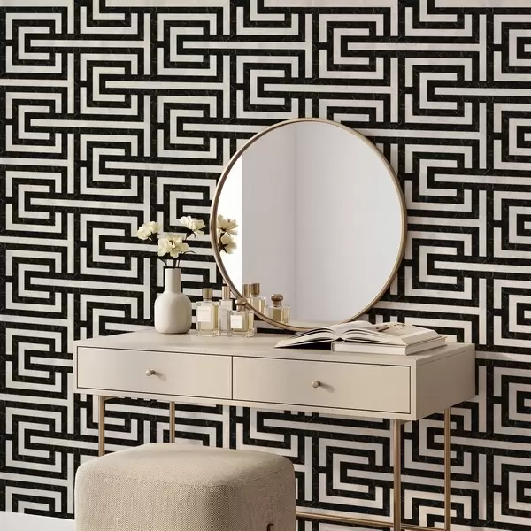 Tapetti Mustavalkoinen geometrinen labyrinttikuvio Nr. a01073