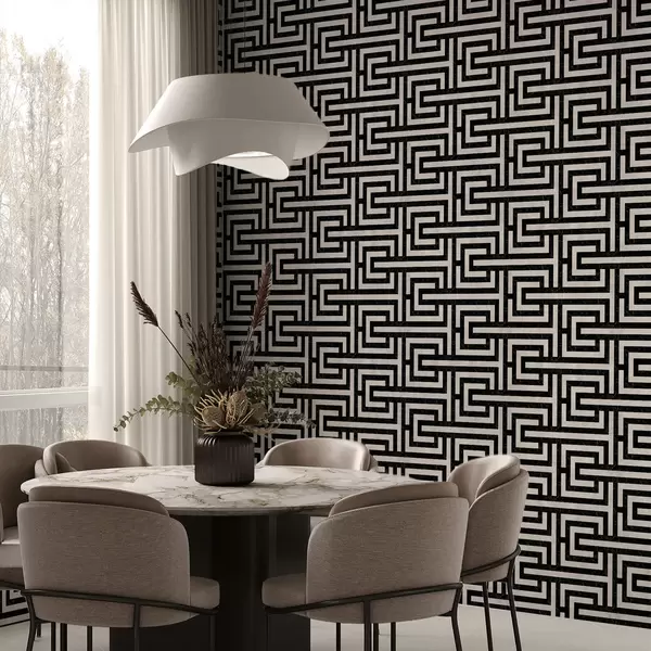 Tapetti Mustavalkoinen geometrinen labyrinttikuvio Nr. a01073