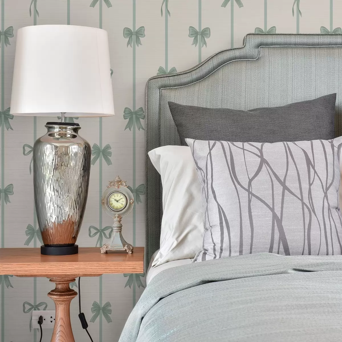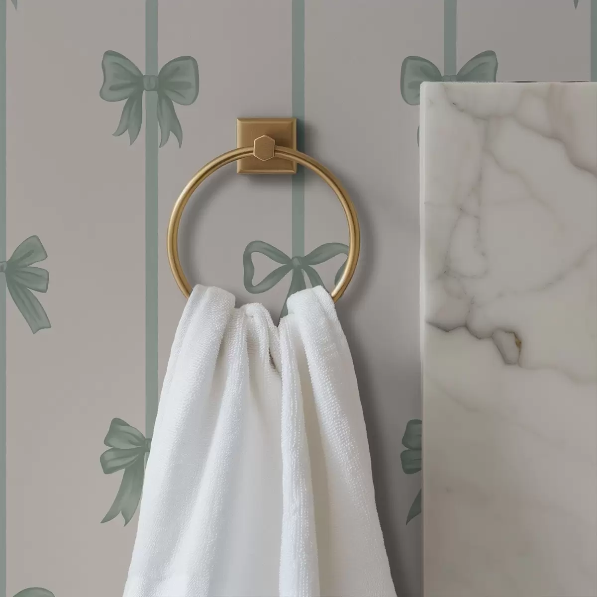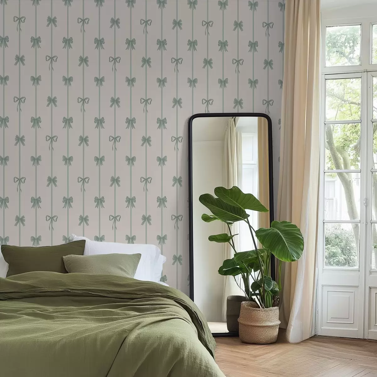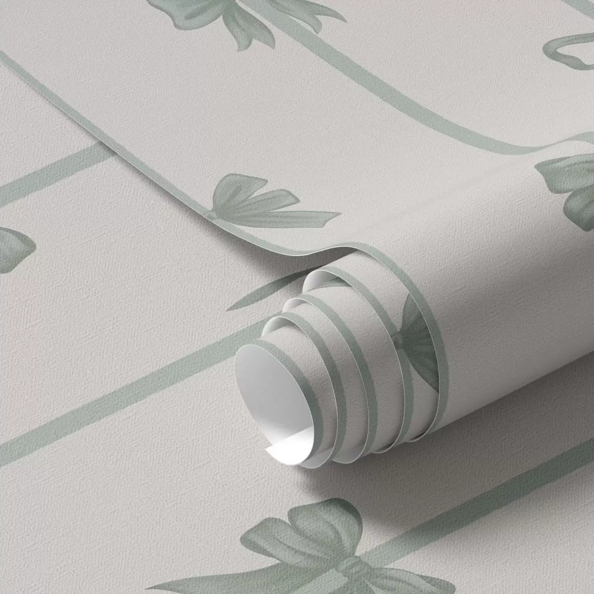 Tapetti Vihreät rusetit nauhoineen beigeä taustaa vasten Nr. a01074v1