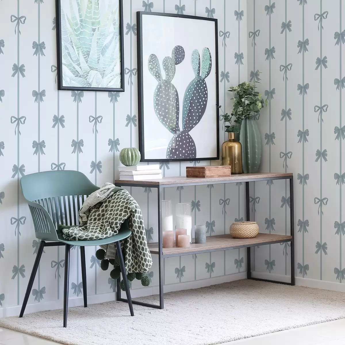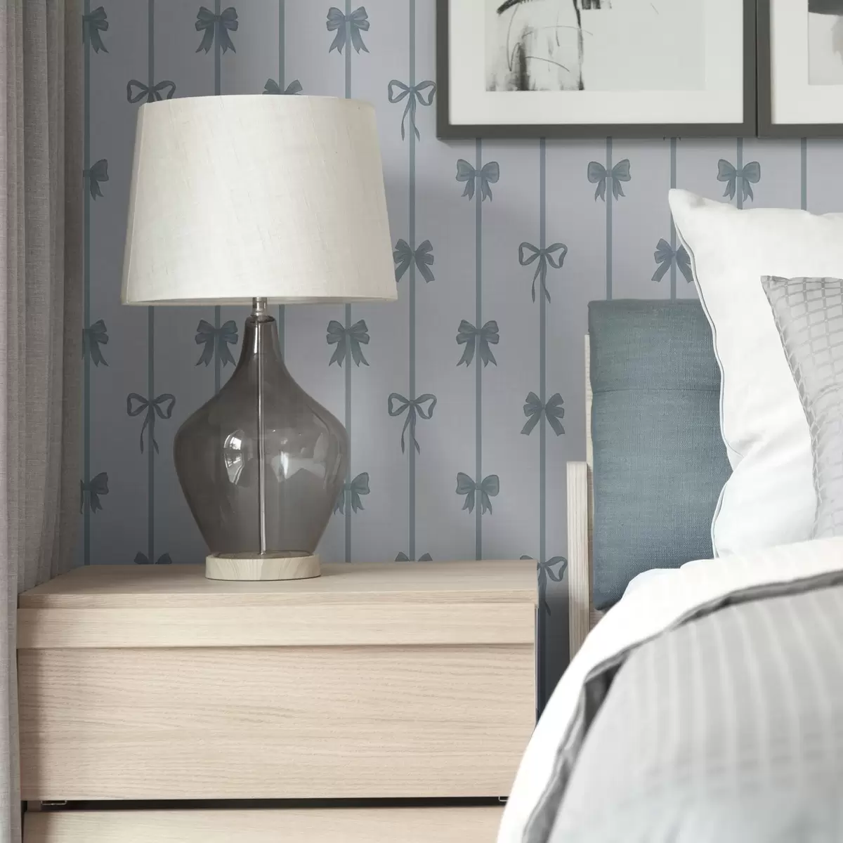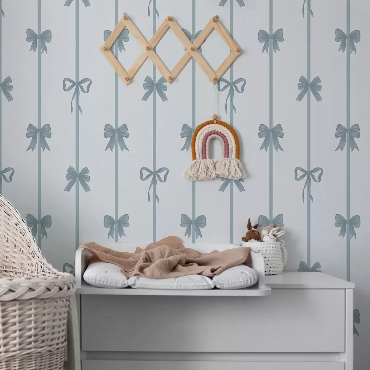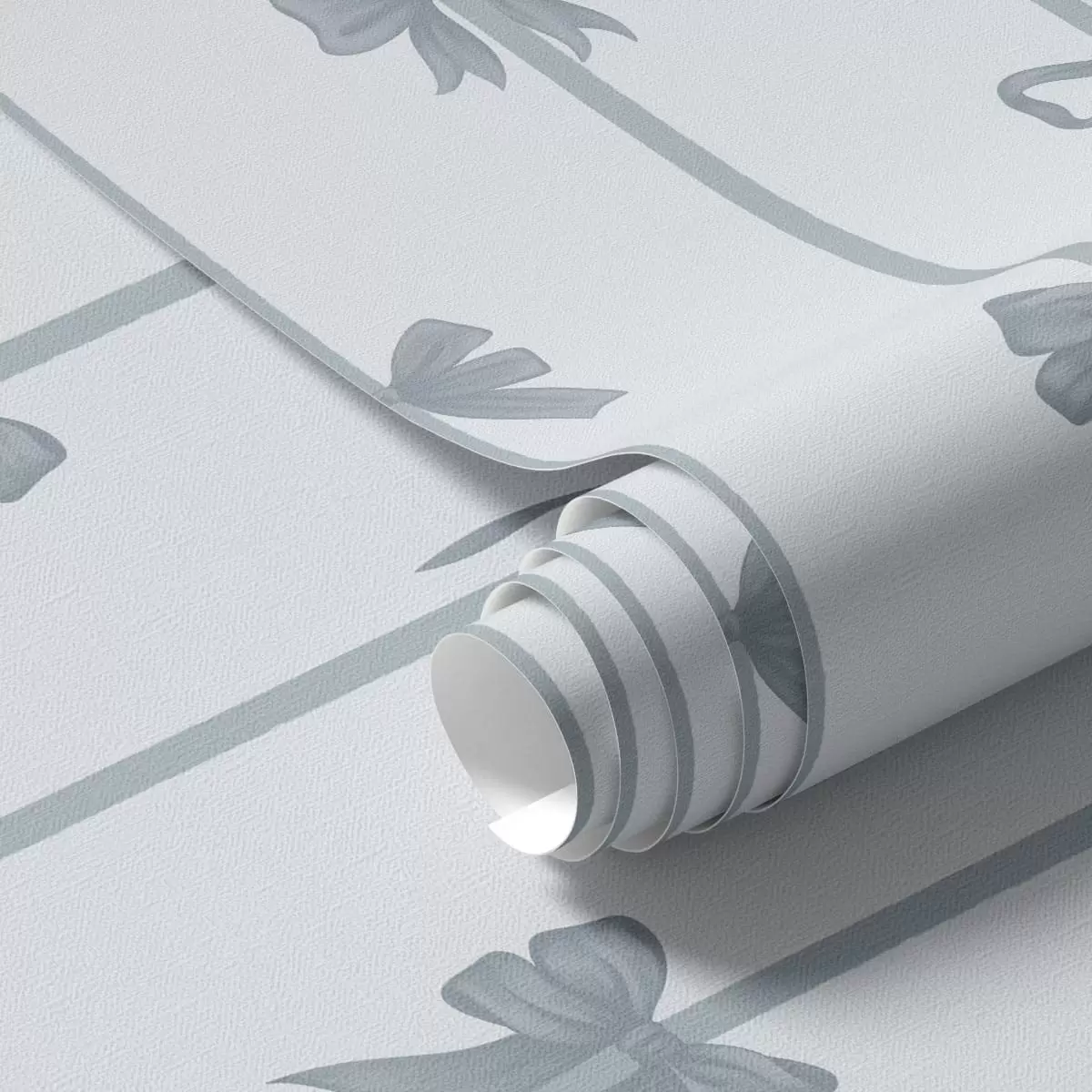 Tapetti Siniset rusetit nauhoineen vaalealla taustalla Nr. a01074v2
