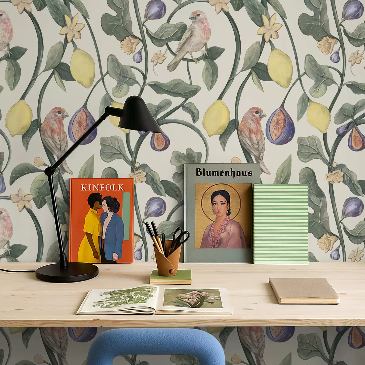 Tapetti Linnut lehtien ja hedelmien keskellä Nr. a01107