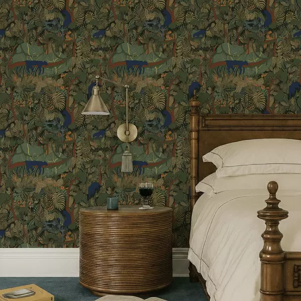 Tapetti Tumma metsämaisema eläimineen Nr. a01108v1