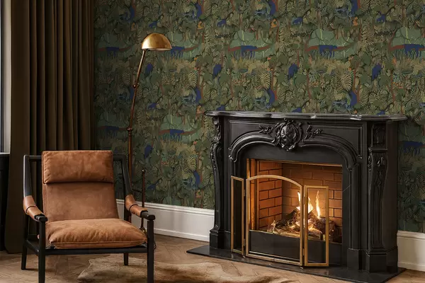 Tapetti Tumma metsämaisema eläimineen Nr. a01108v1