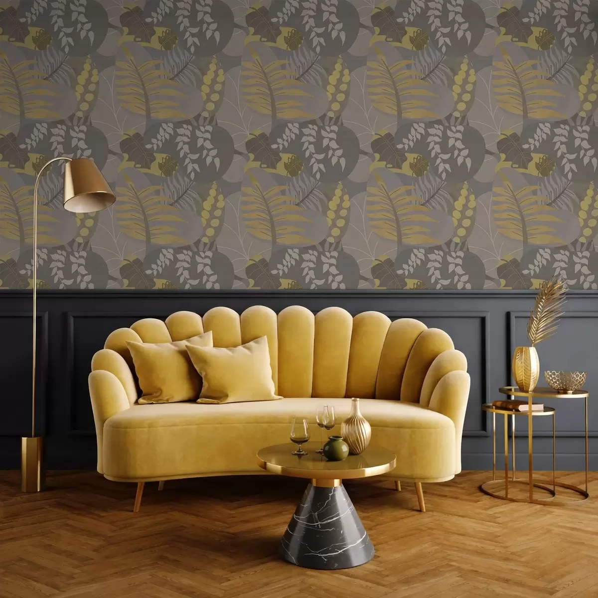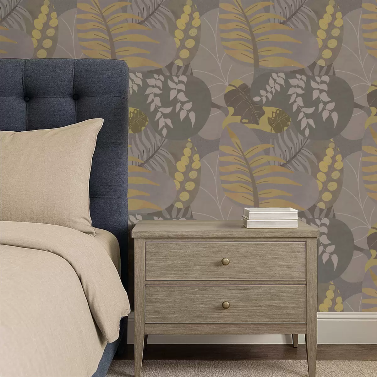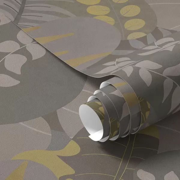 Tapetti Abstraktit lehdet harmaissa ja keltaisissa sävyissä Nr. a01112