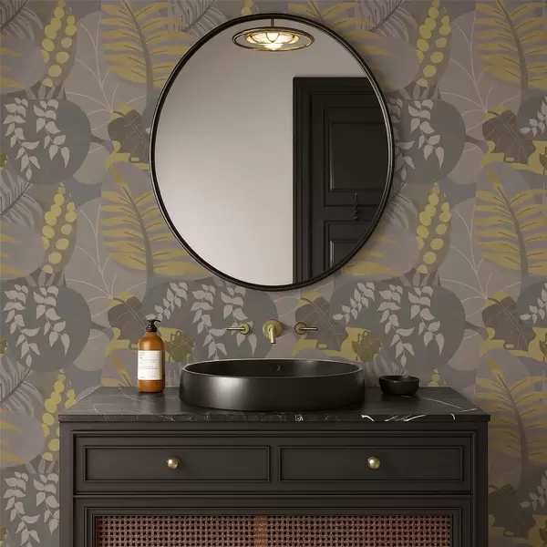Tapetti Abstraktit lehdet harmaissa ja keltaisissa sävyissä Nr. a01112