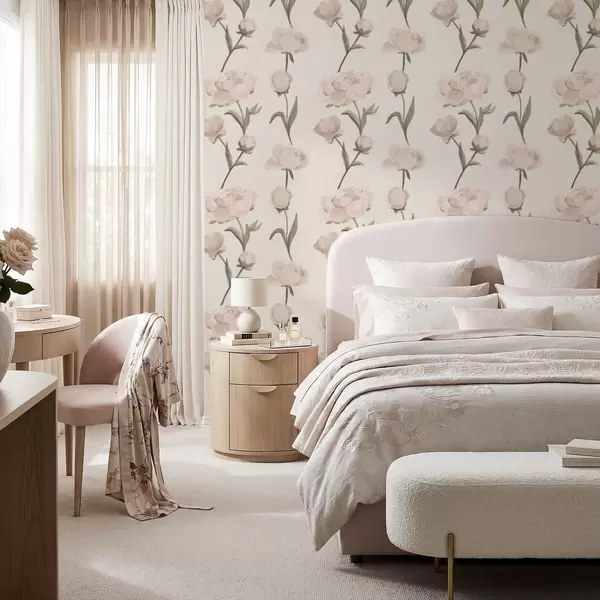 Tapetti Vaaleanpunaiset pionit vaalealla taustalla Nr. a01114