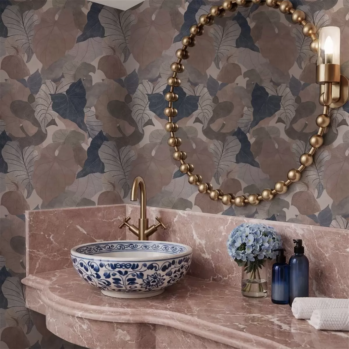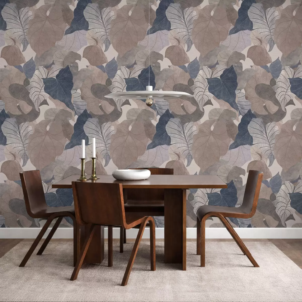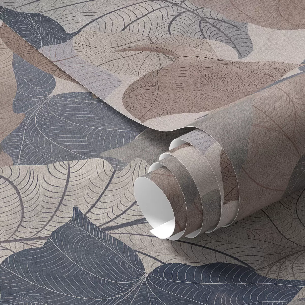 Tapetti Suuret tyylitellyt lehdet pastellisävyissä Nr. a01115