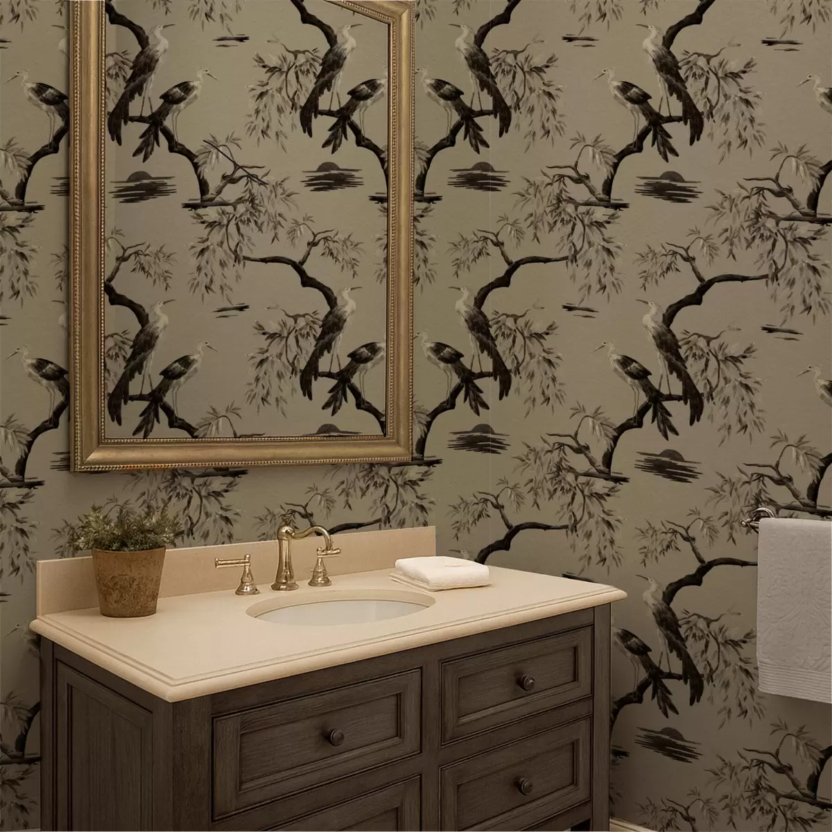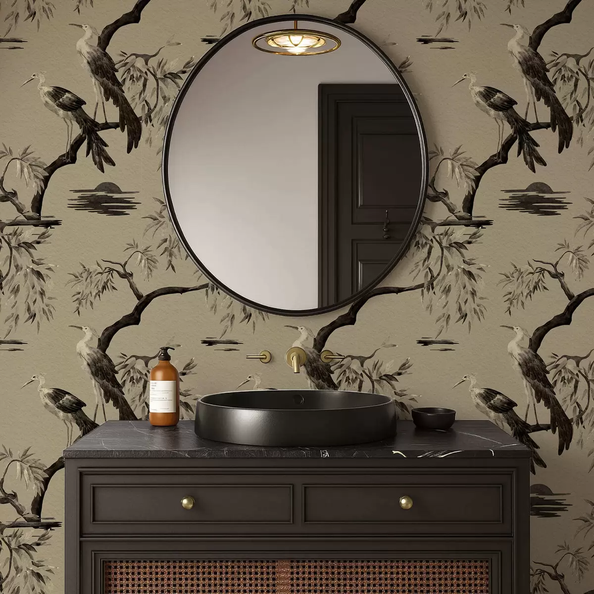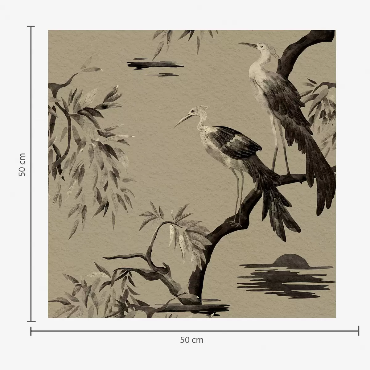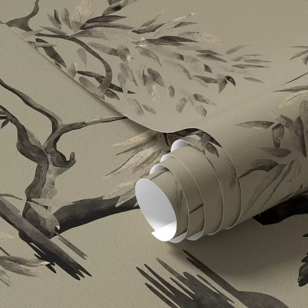 Tapetti Linnut oksalla yksivärisissä sävyissä Nr. a01116v2