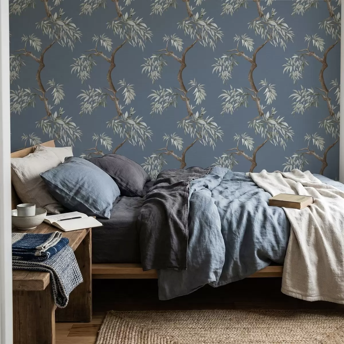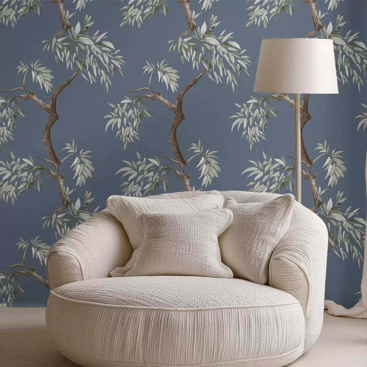 Tapetti Lehtinen puun oksa sinisellä taustalla Nr. a01117