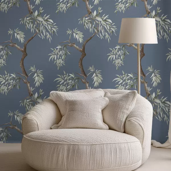 Tapetti Lehtinen puun oksa sinisellä taustalla Nr. a01117