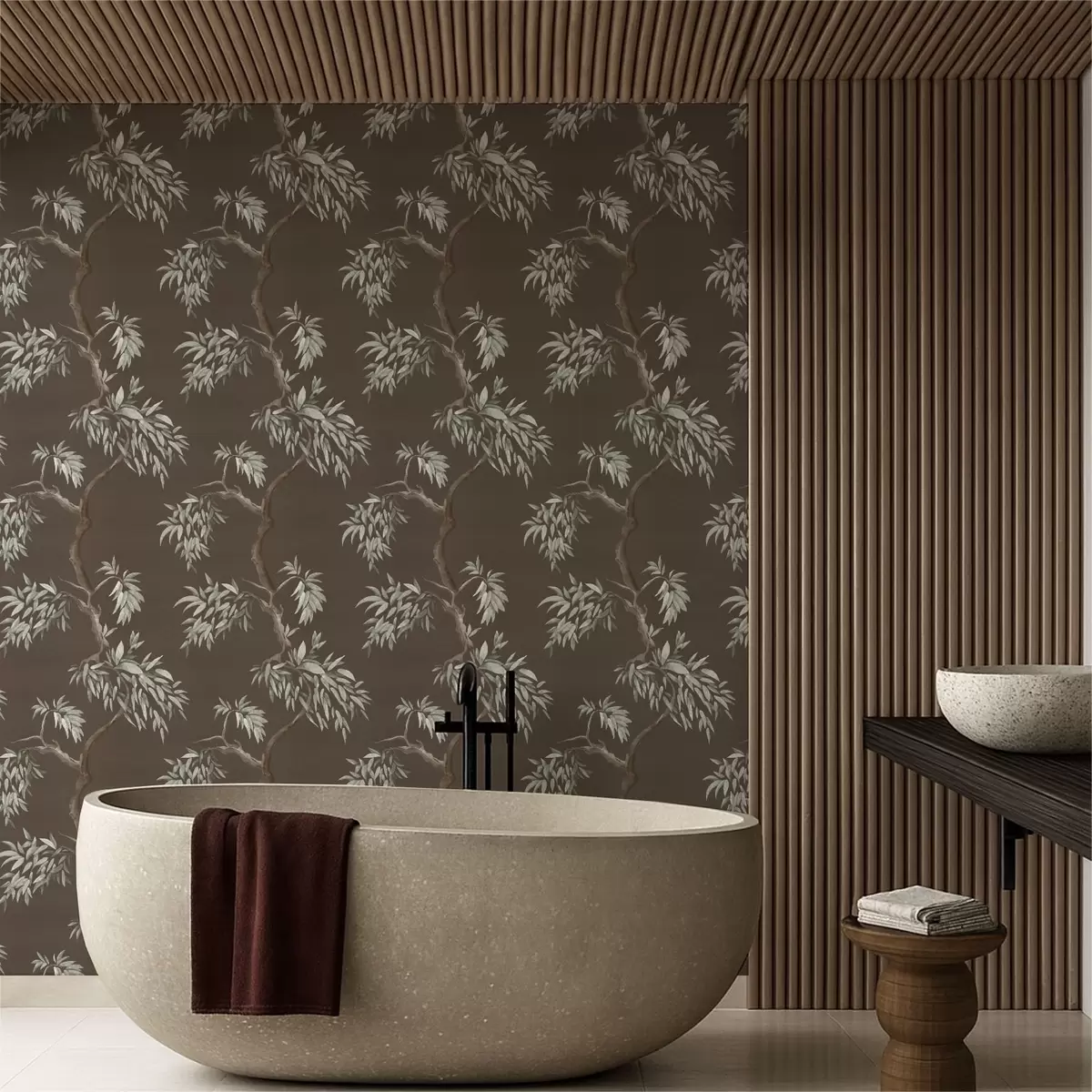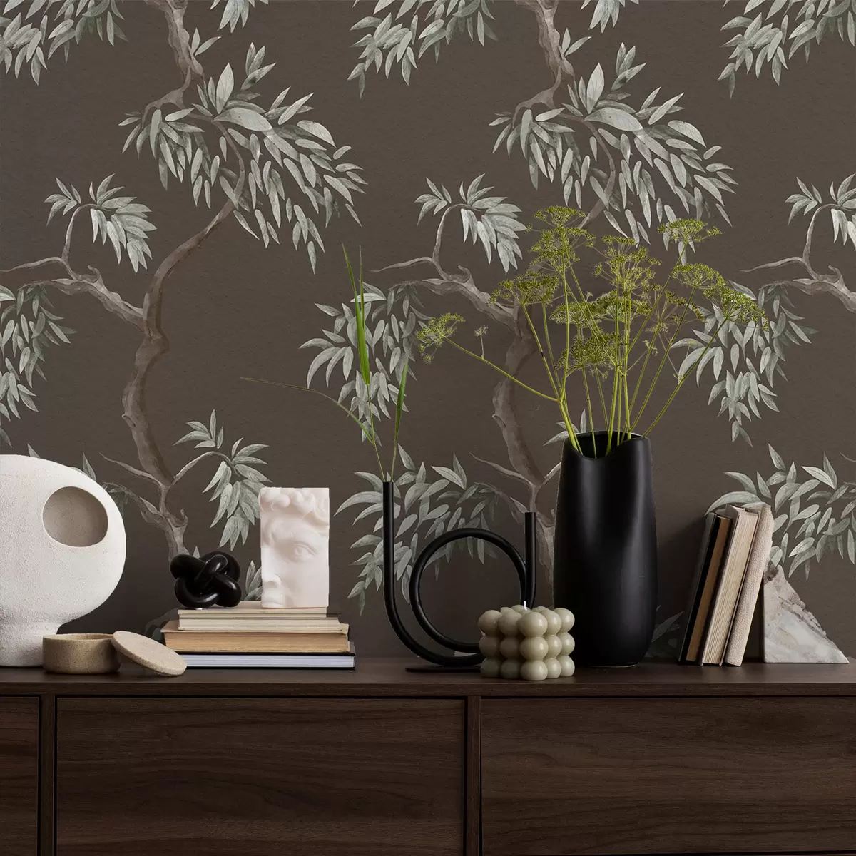 Tapetti Lehtinen puun oksa ruskealla taustalla Nr. a01117v3