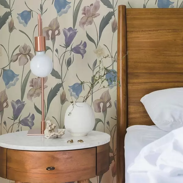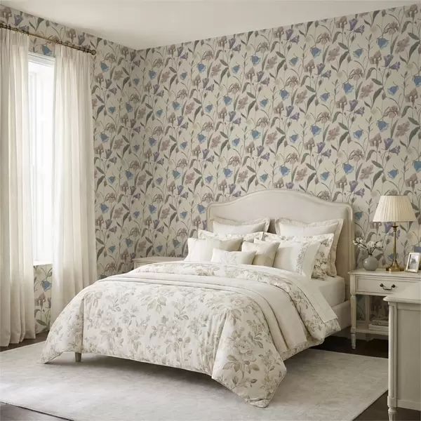 Tapetti Pastellivärinen kukkakuvio vaalealla taustalla Nr. a01118