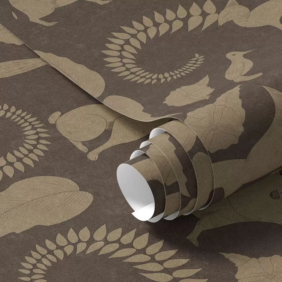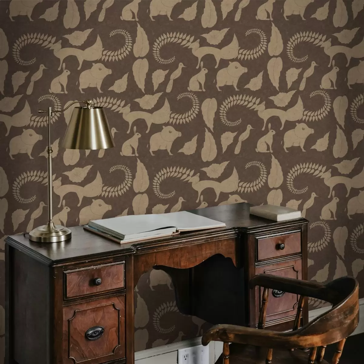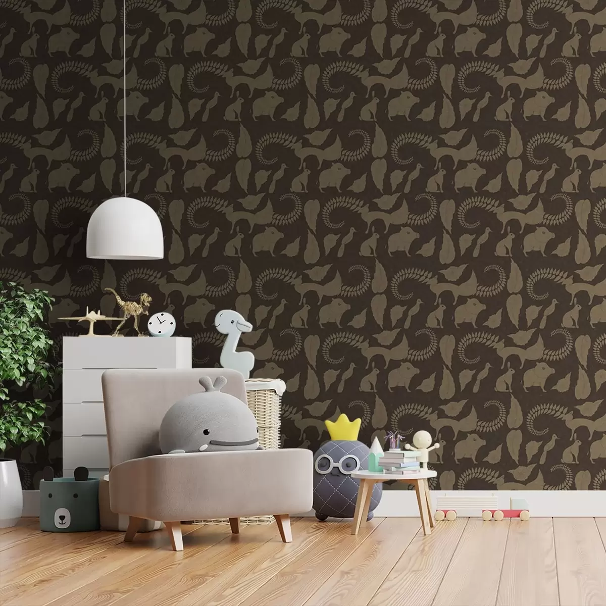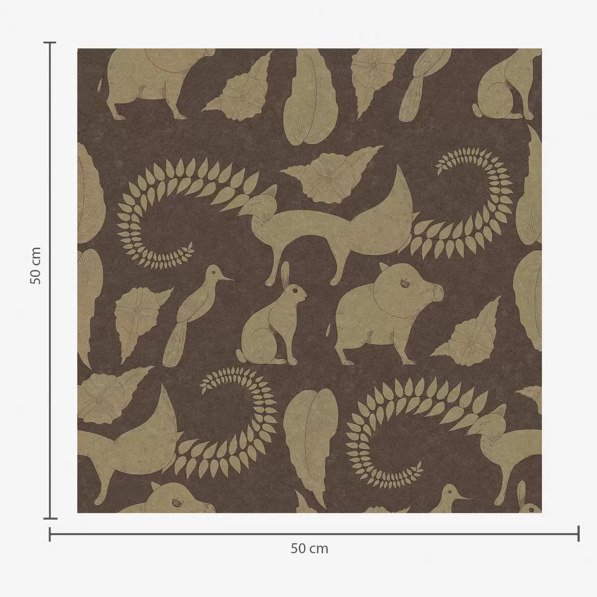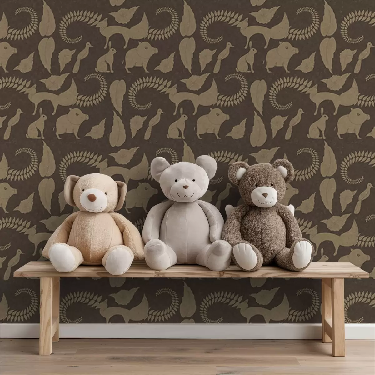 Tapetti Metsäkuvio eläimillä ruskealla taustalla Nr. a01121