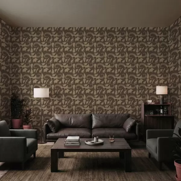 Tapetti Metsäkuvio eläimillä ruskealla taustalla Nr. a01121