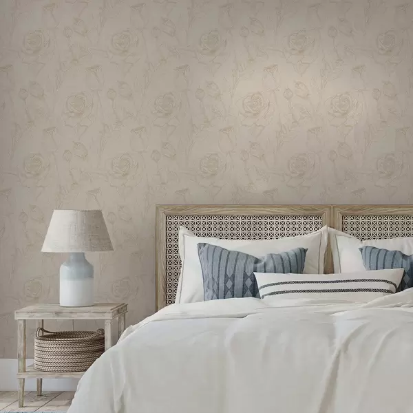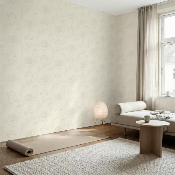 Tapetti Vaaleanpunainen kukkakuvio beige-taustalla Nr. a01124