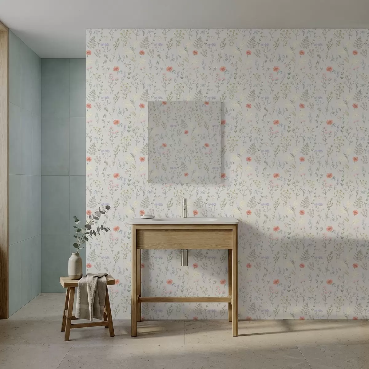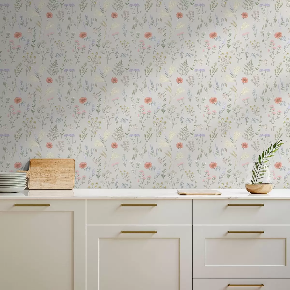 Tapetti Hienovarainen luonnonkukkakuosi vaalealla taustalla Nr. a01152