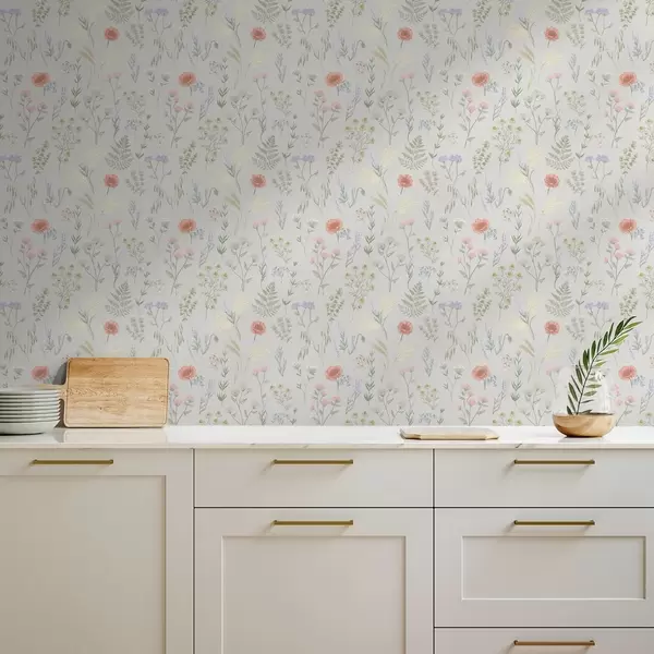 Tapetti Hienovarainen luonnonkukkakuosi vaalealla taustalla Nr. a01152