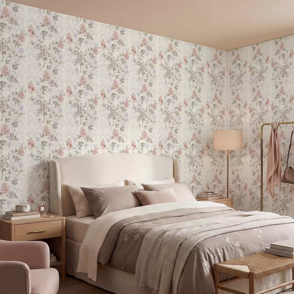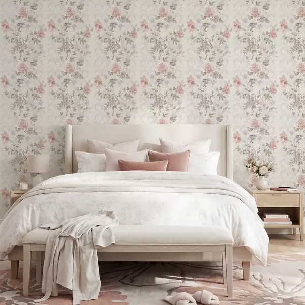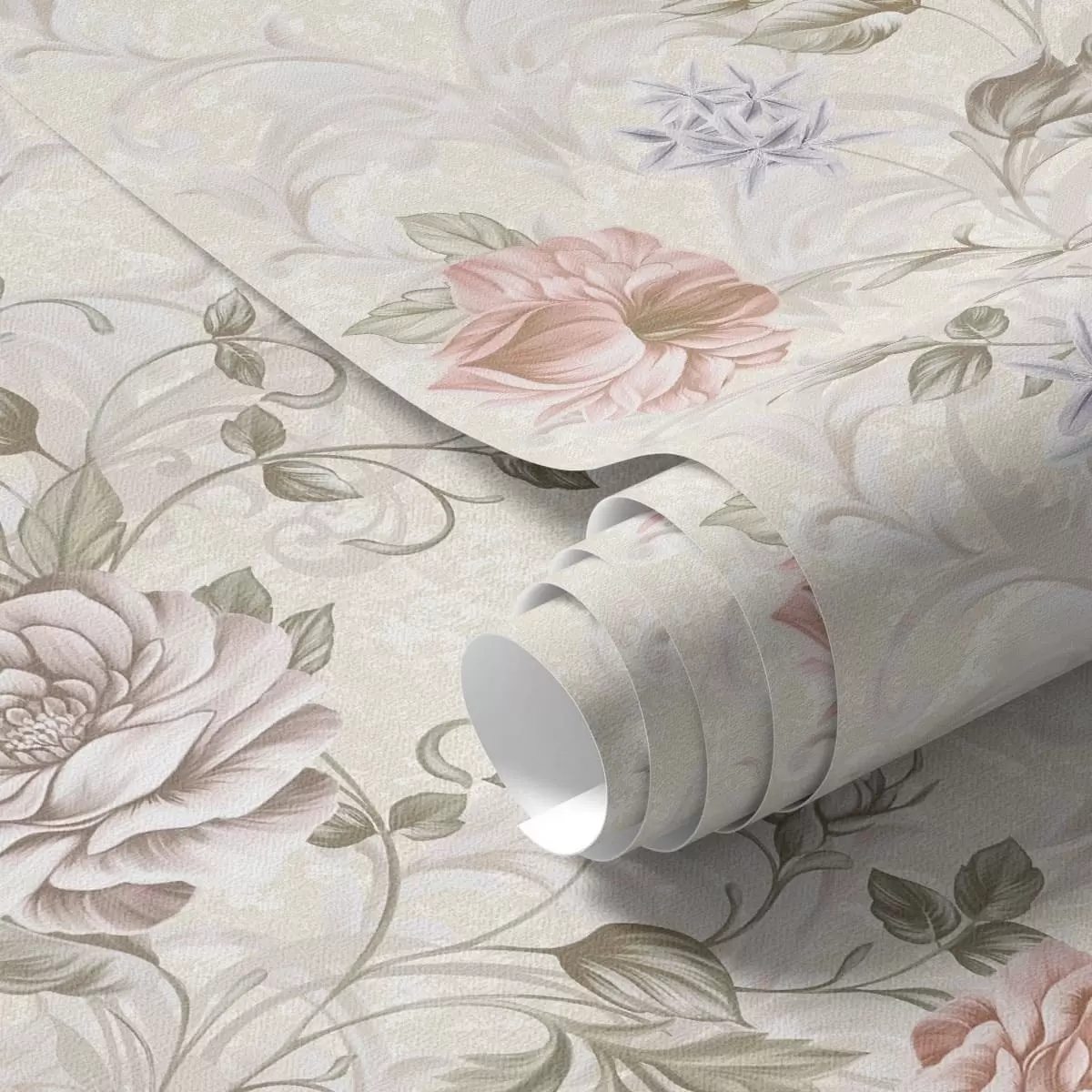 Tapetti Kuvio, jossa on suuria kukkia pastellisävyissä Nr. a01154