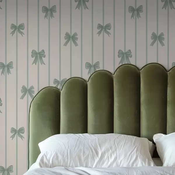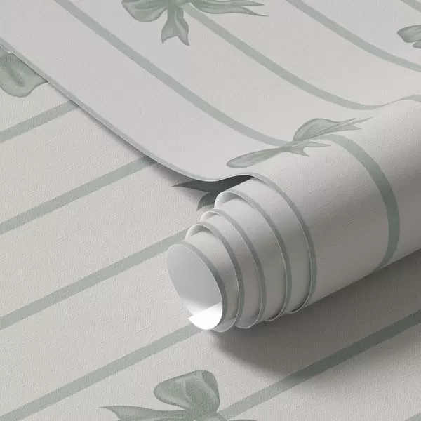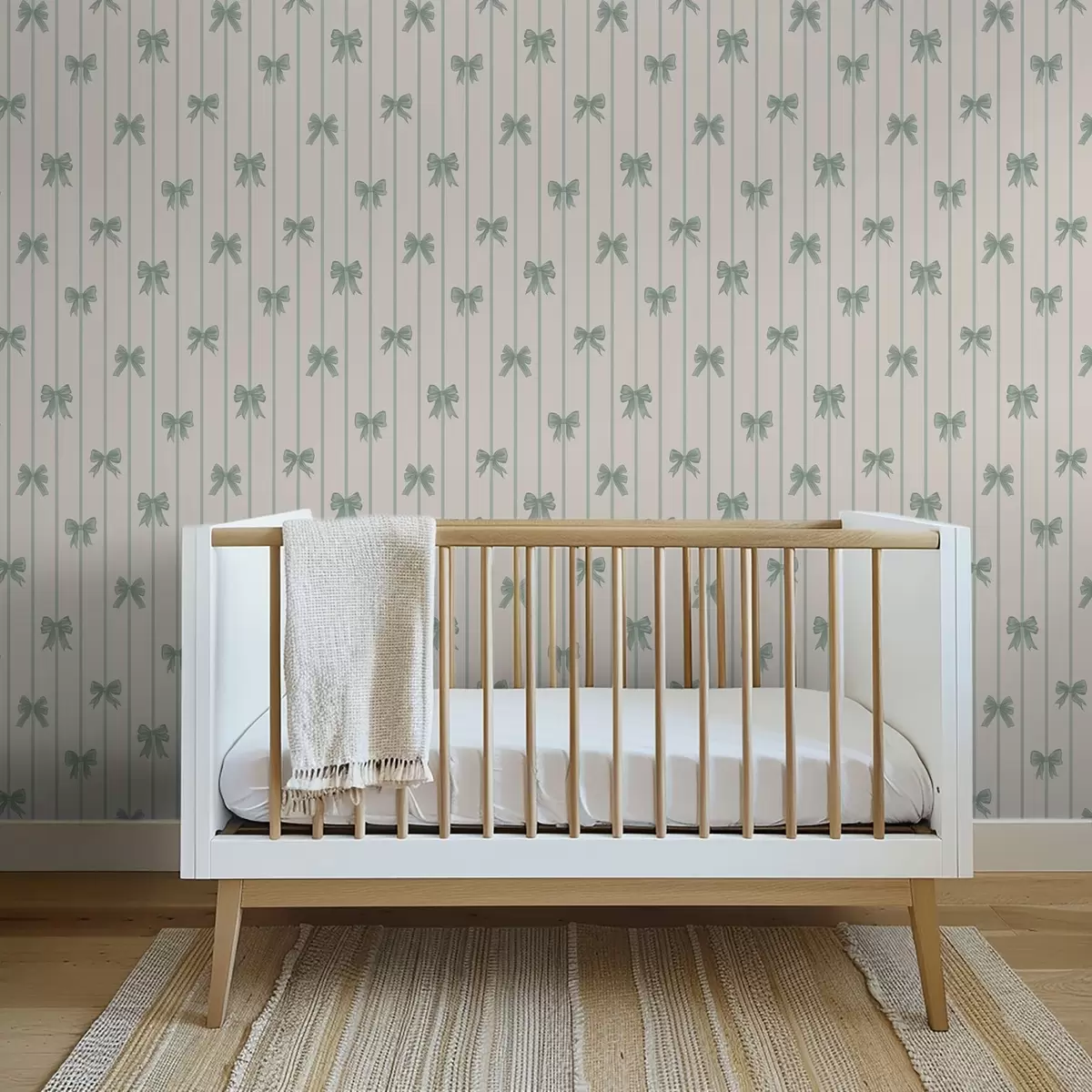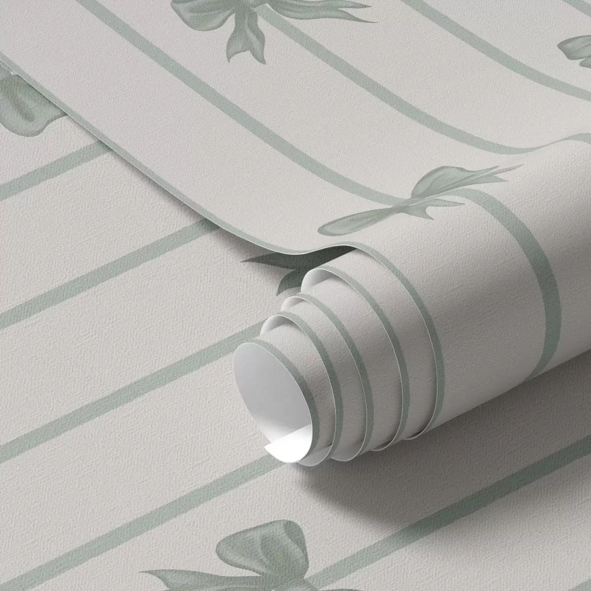 Tapetti Vihreät rusetit raidallisella beige-taustalla Nr. a01162v1