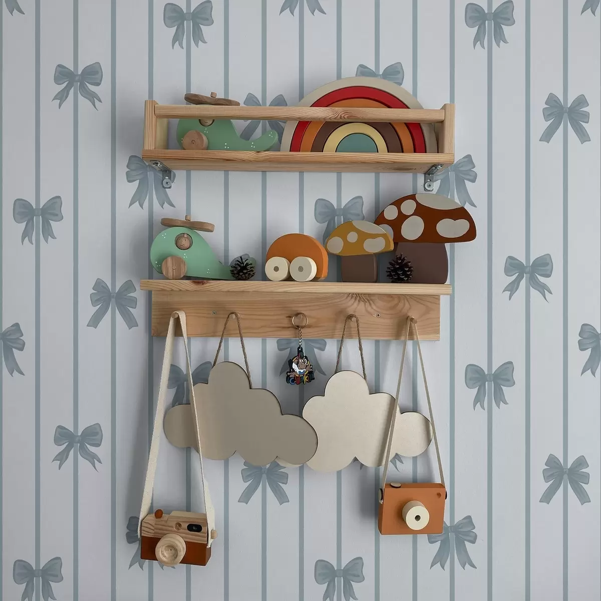 Tapetti Siniset rusetit raidallisella vaalealla taustalla Nr. a01162v2