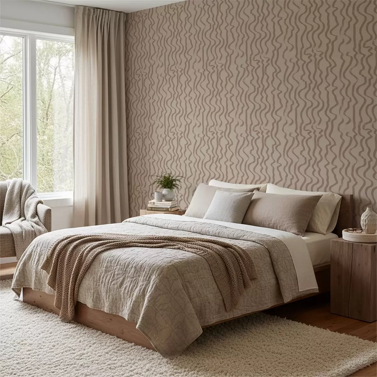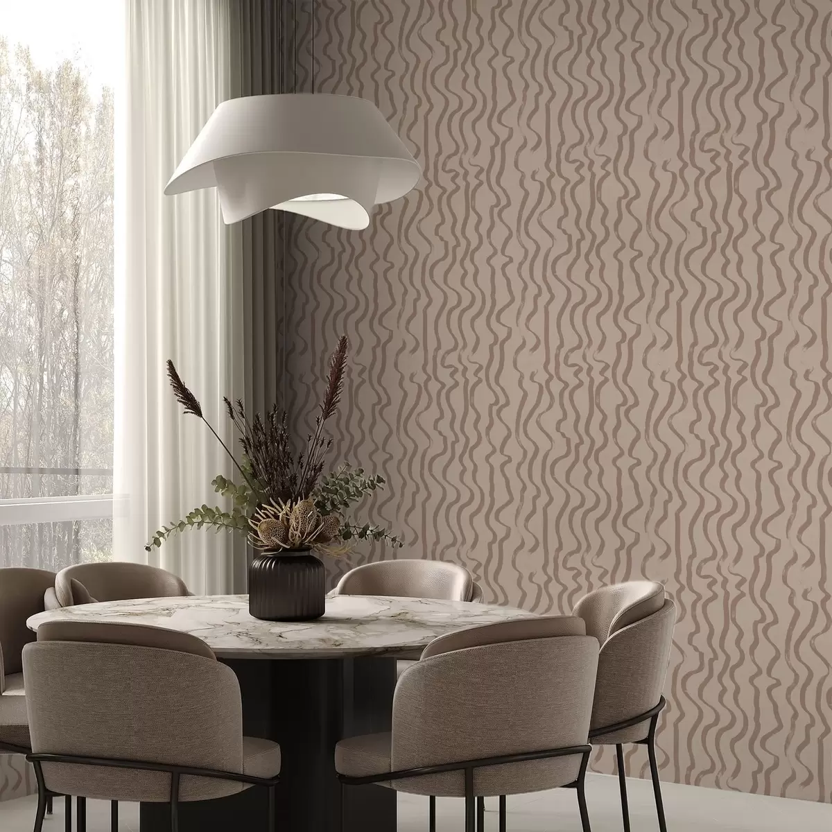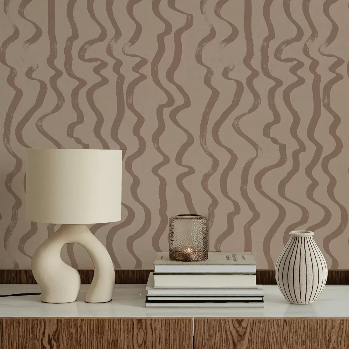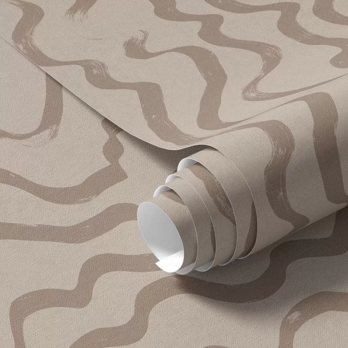 Tapetti Vaalean taustan päällä olevat beigeä aaltoilevat viivat Nr. a01168v2
