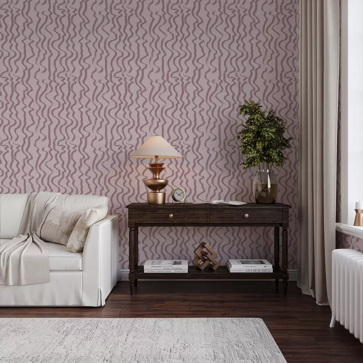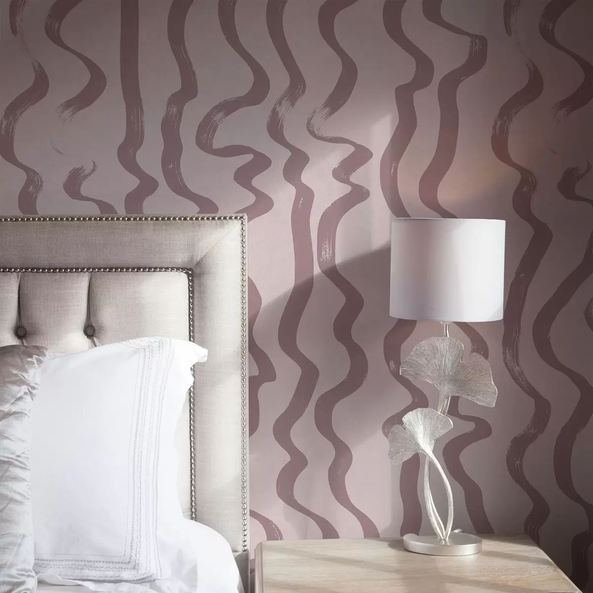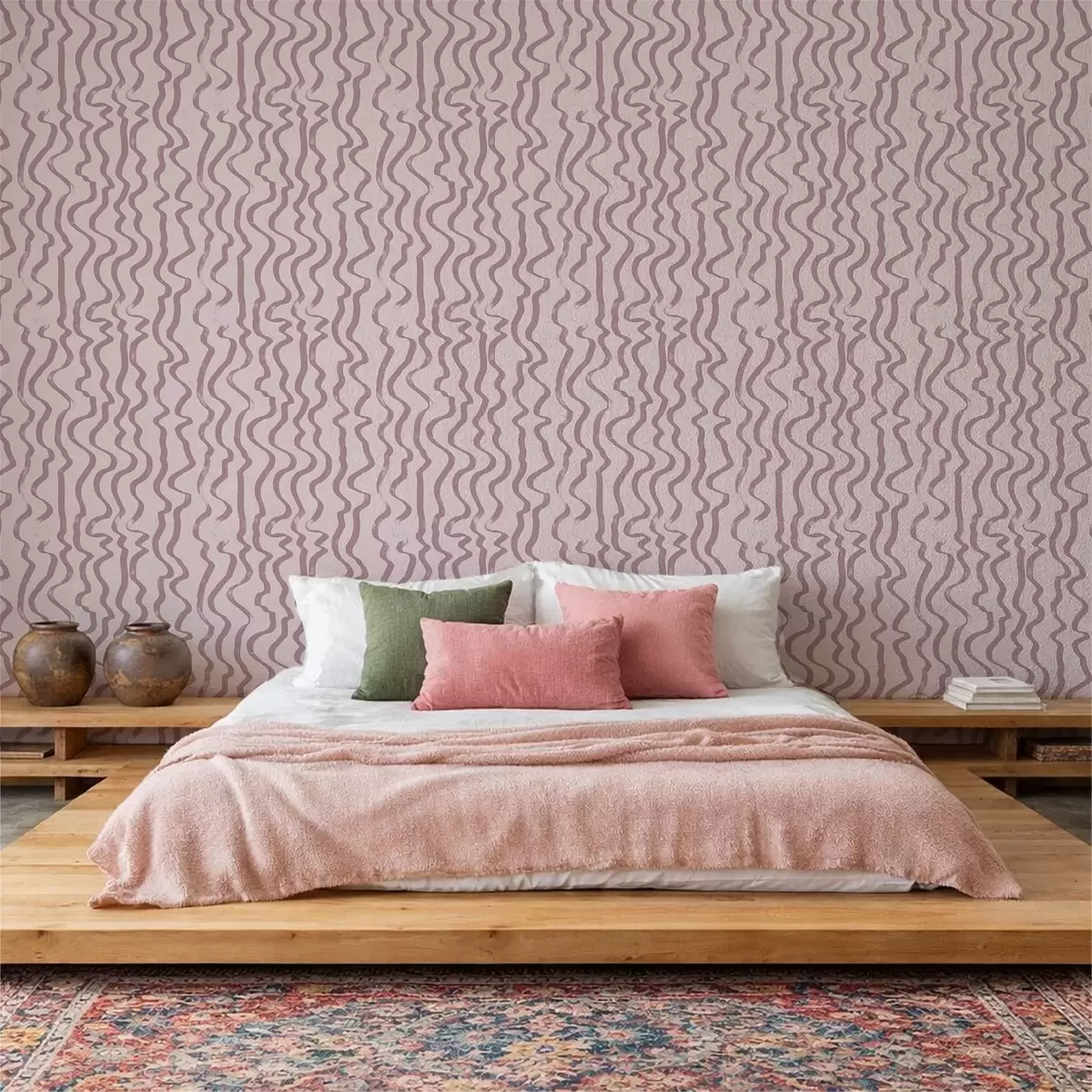 Tapetti Vaalealla taustalla olevat vaaleanpunaiset aaltoilevat viivat Nr. a01168v3