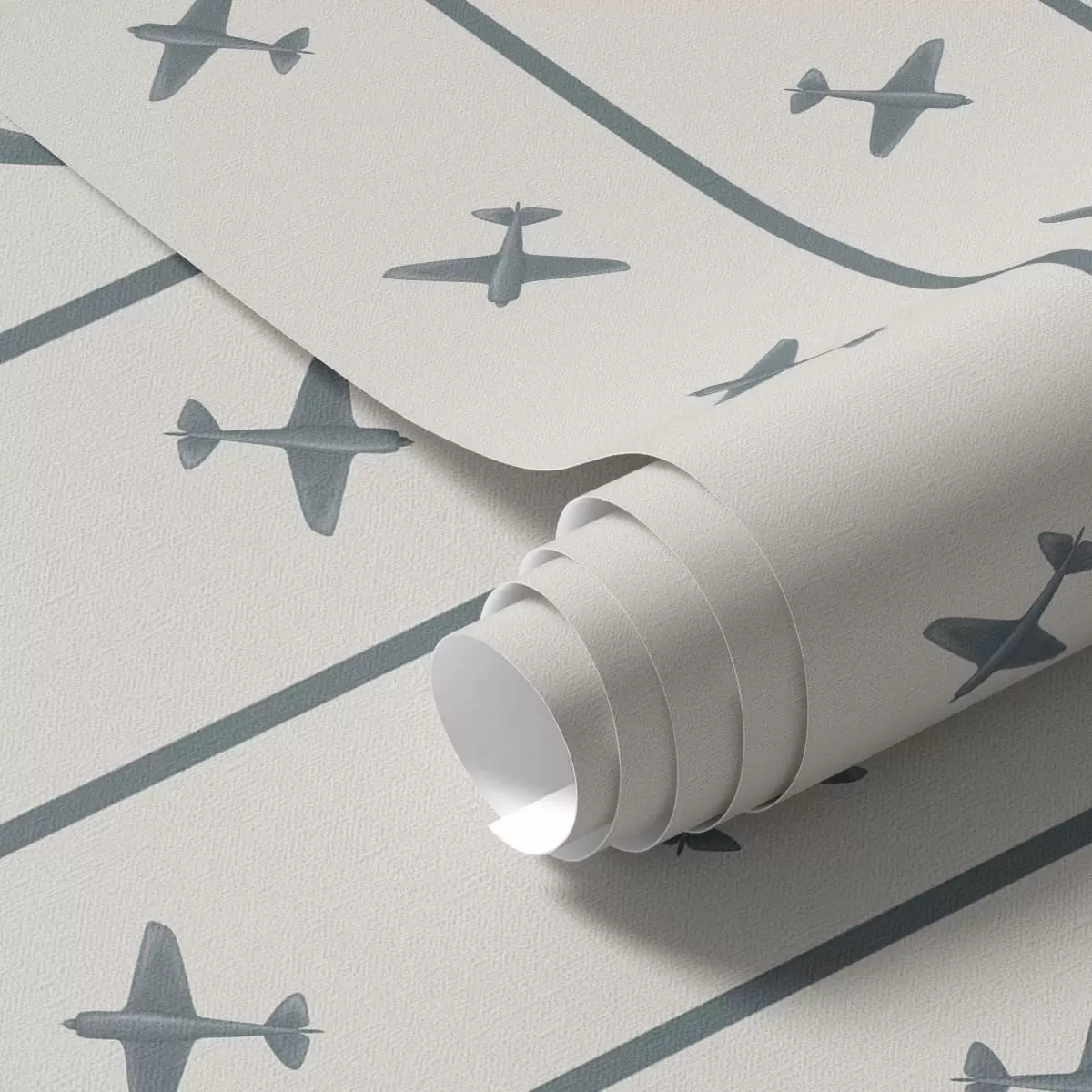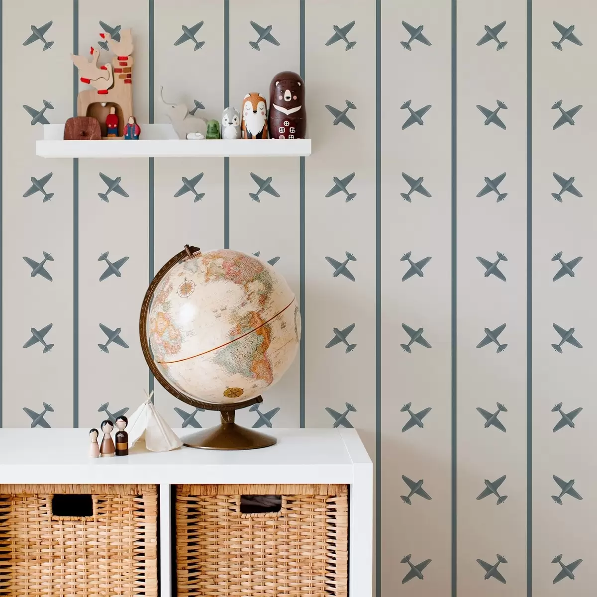 Tapetti Raidalliset lentokoneet, joissa on sinisiä yksityiskohtia Nr. a01169