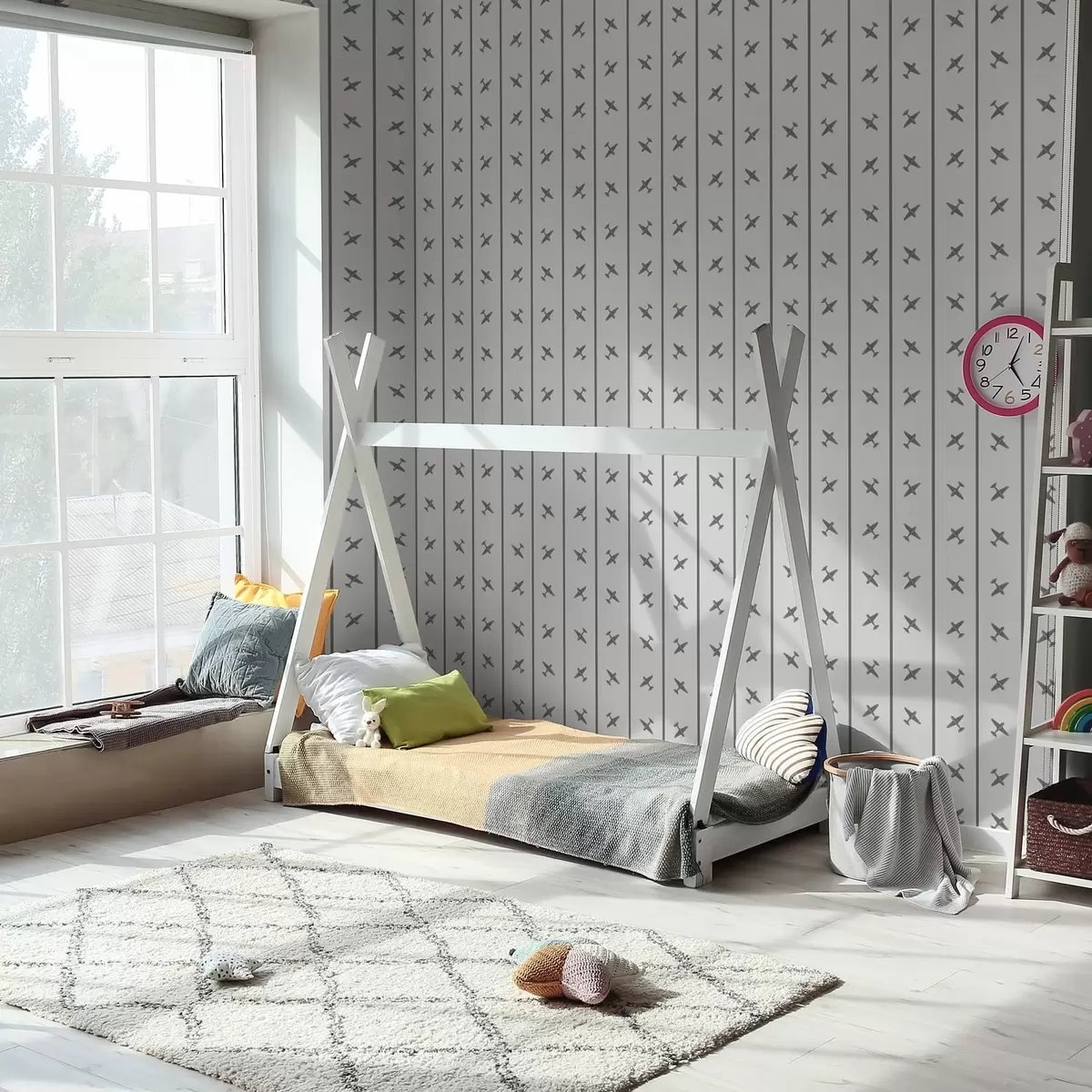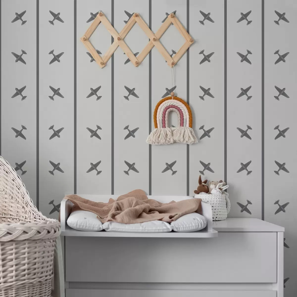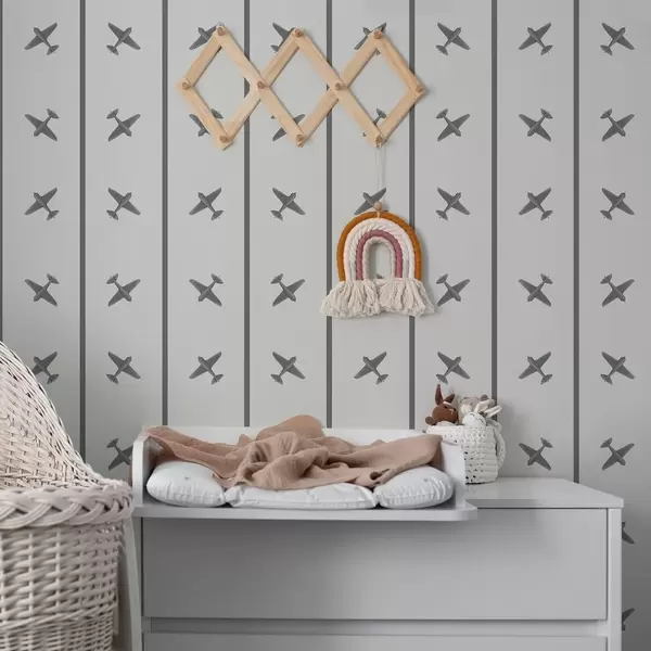 Tapetti Raidalliset lentokoneet harmaansävyisinä Nr. a01169v2
