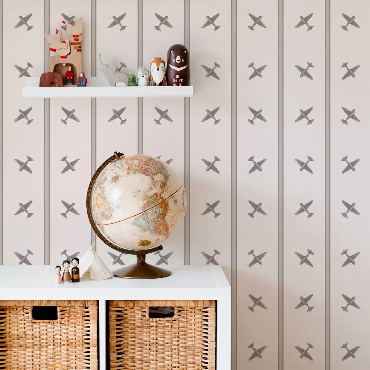 Tapetti Kuvioidut lentokoneet vaalealla taustalla Nr. a01170v1