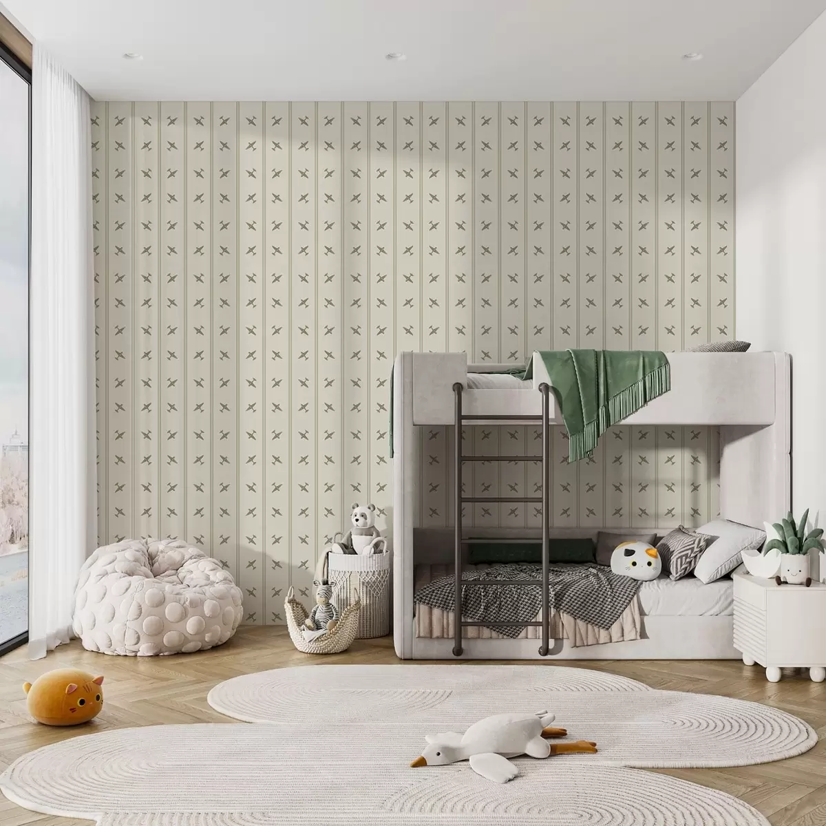 Tapetti Raidalliset lentokoneet oliivinsävyissä Nr. a01170v2