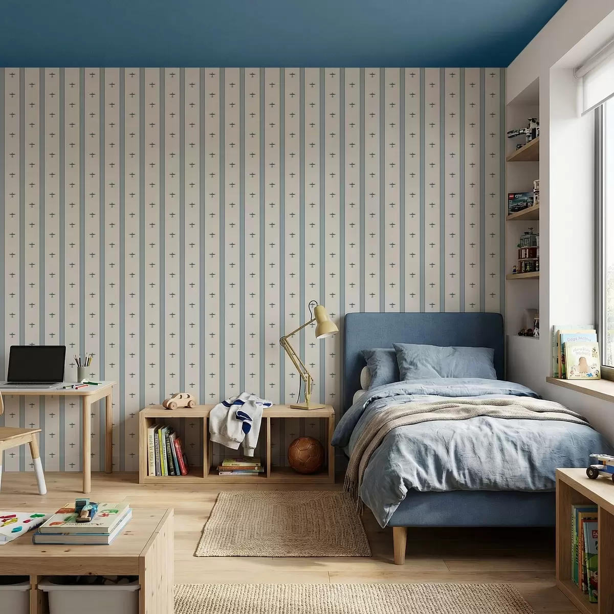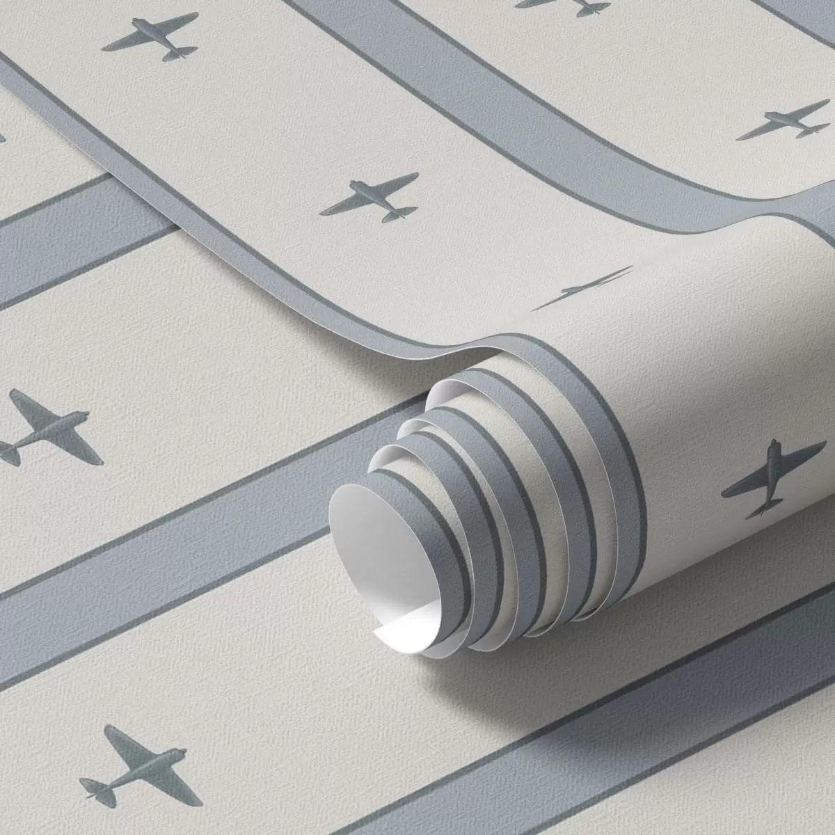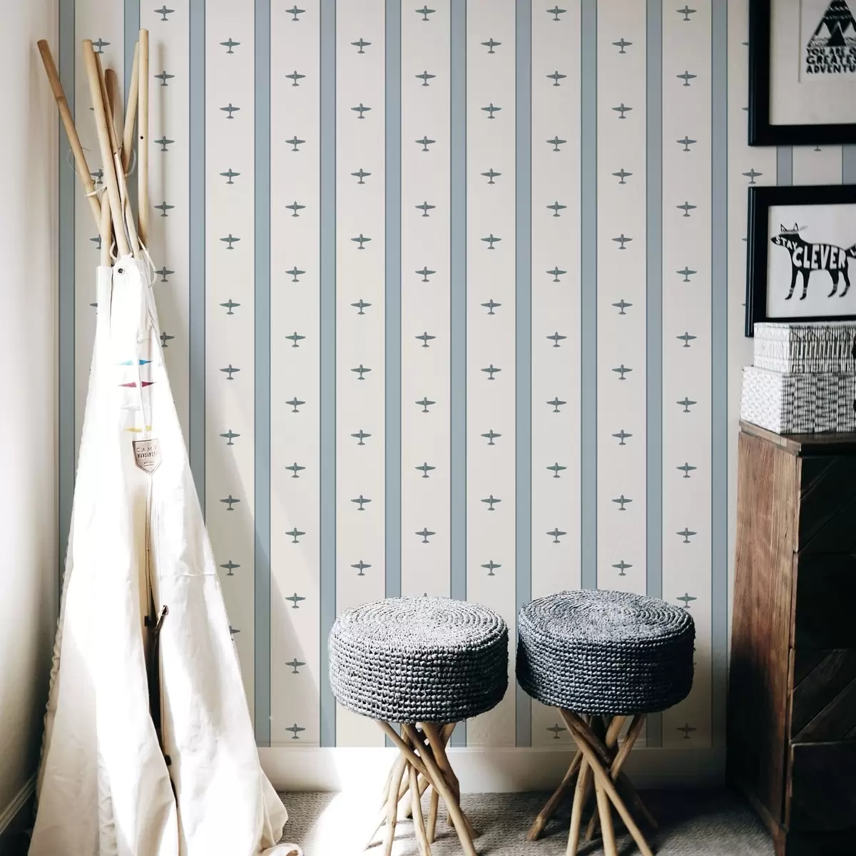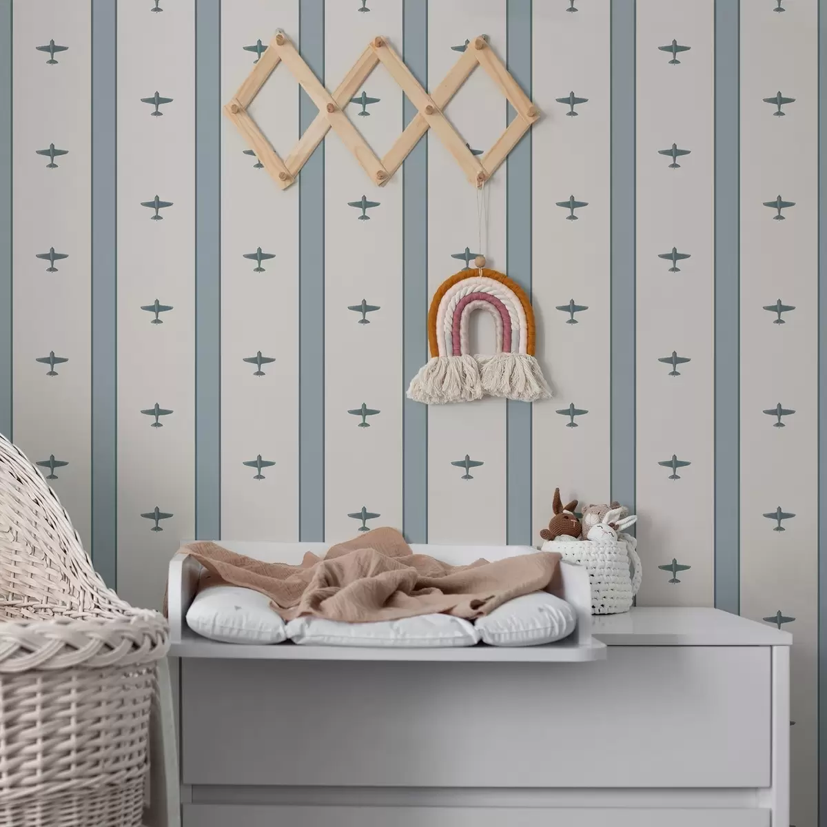 Tapetti Pienet lentokoneet raidoilla sinisellä taustalla Nr. a01171