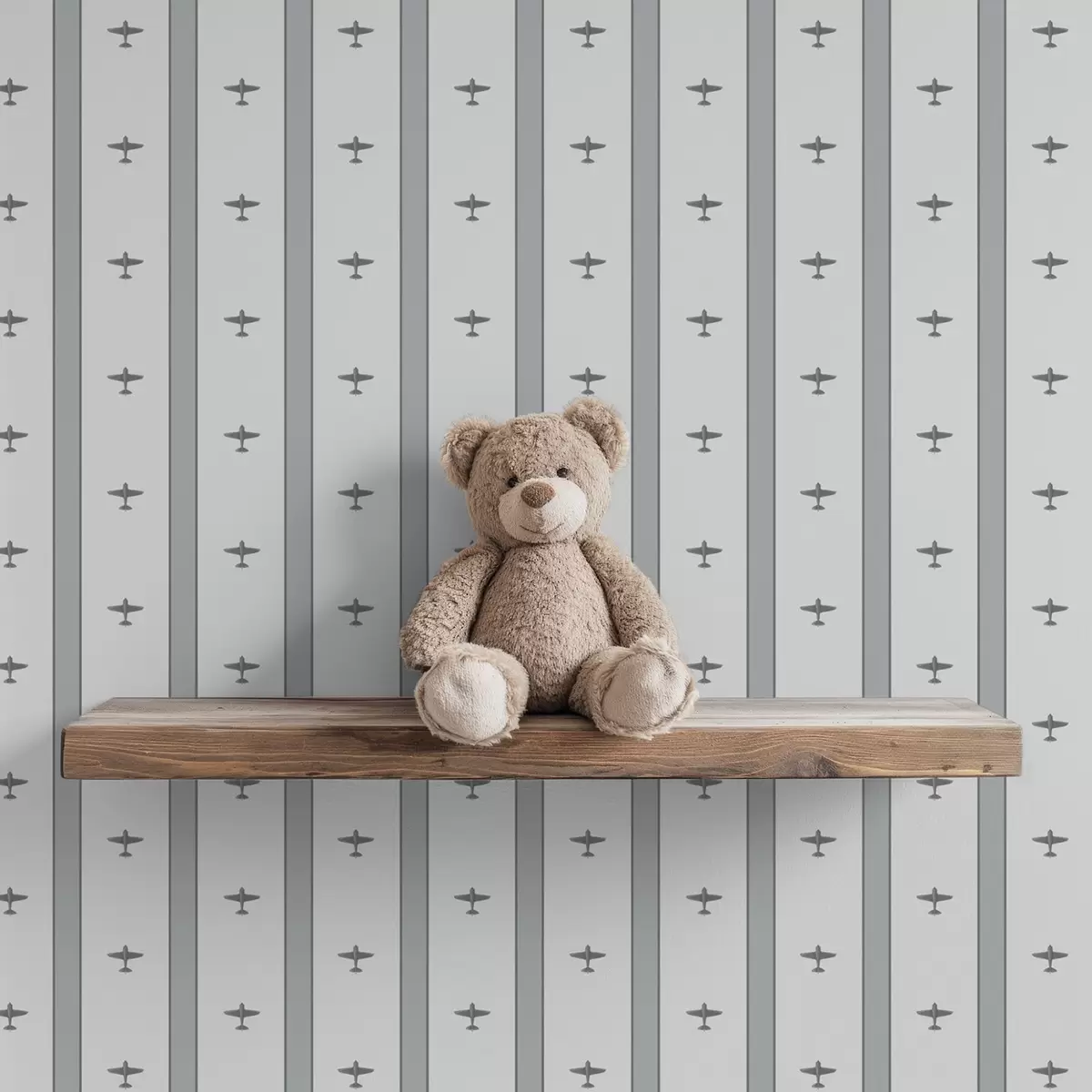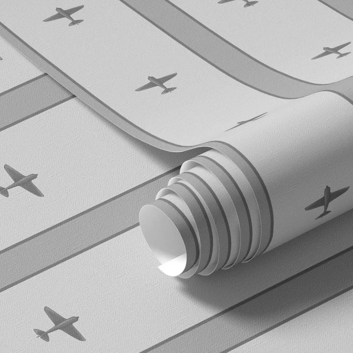 Tapetti Pienet lentokoneet raidoin harmaalla taustalla Nr. a01171v1