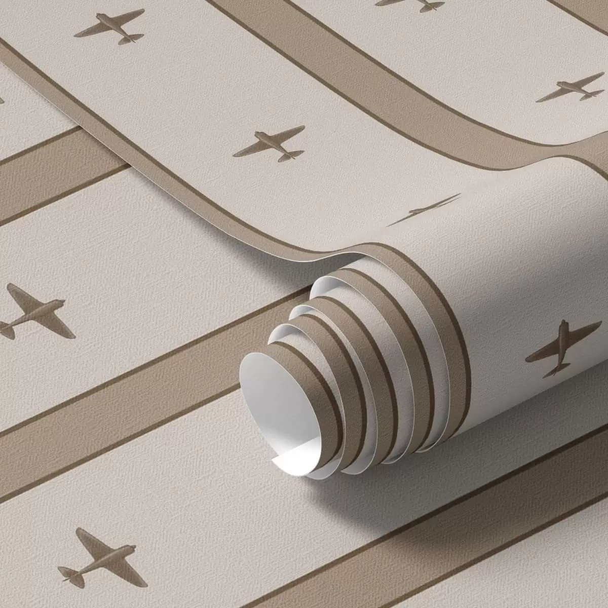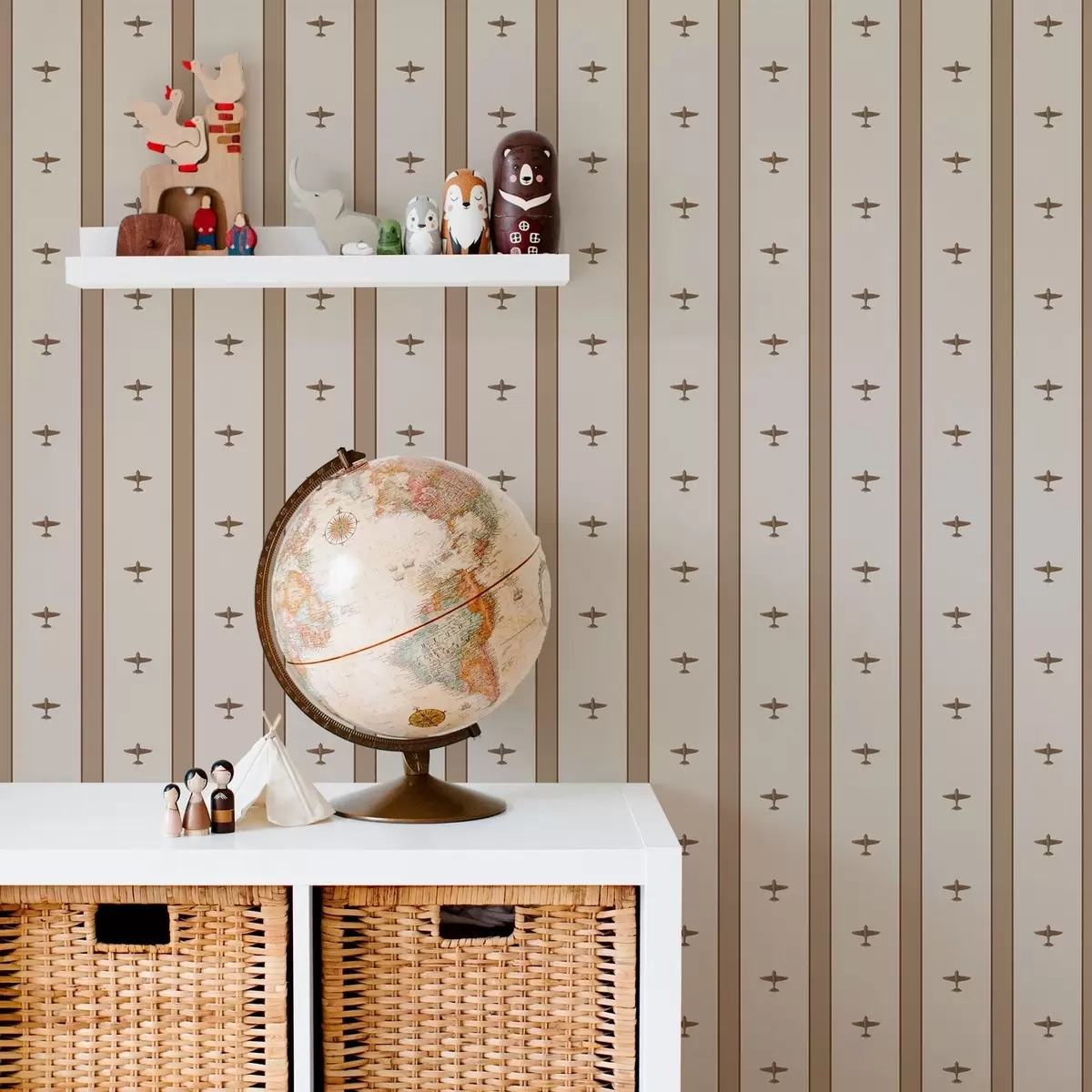Tapetti Pienet lentokoneet raidoin ruskealla taustalla Nr. a01171v2
