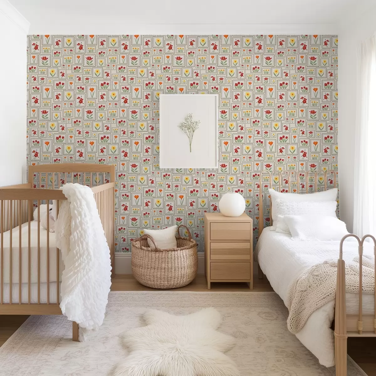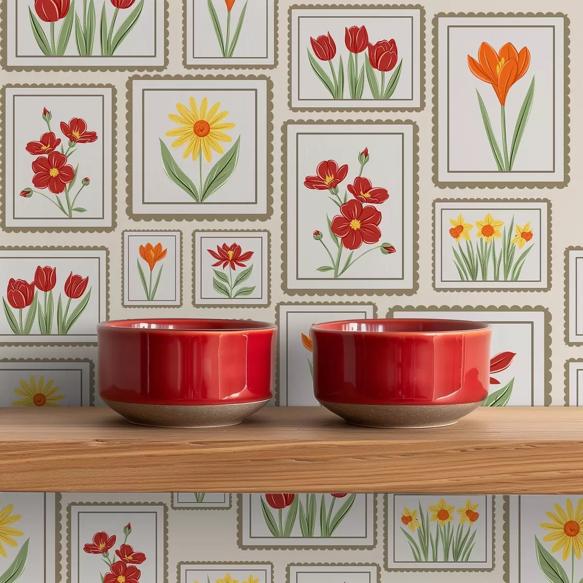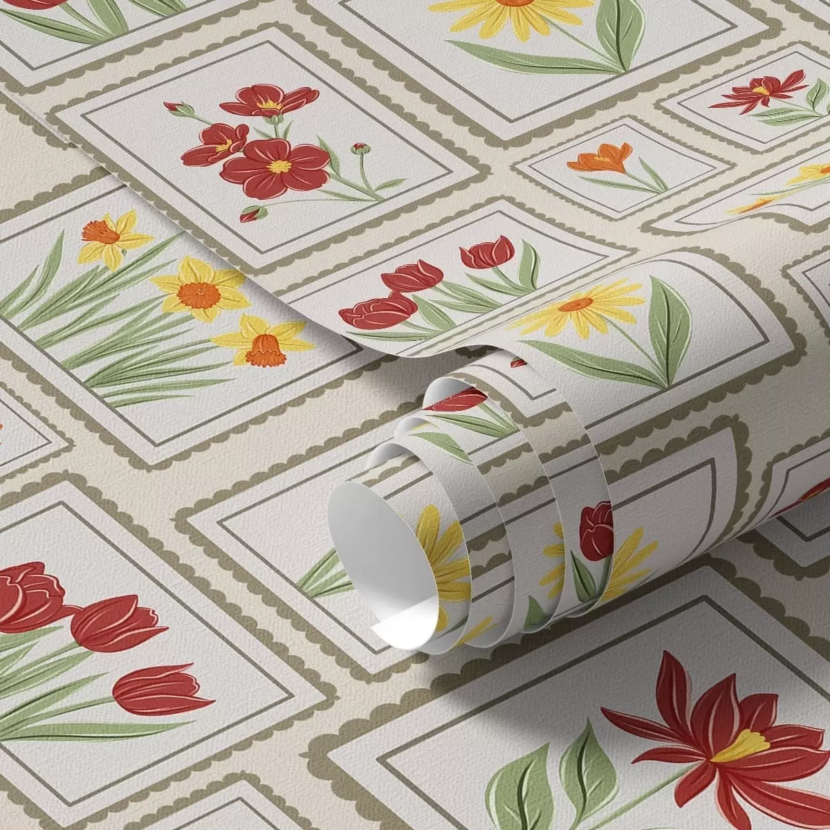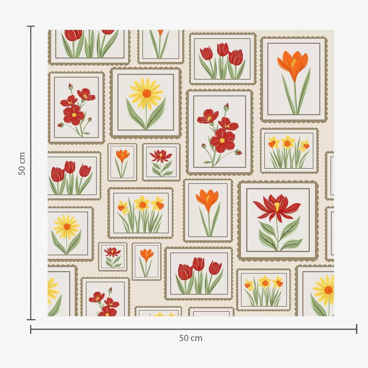 Tapetti Kehystetyt kukkakuvitukset lämpimissä sävyissä Nr. a01173