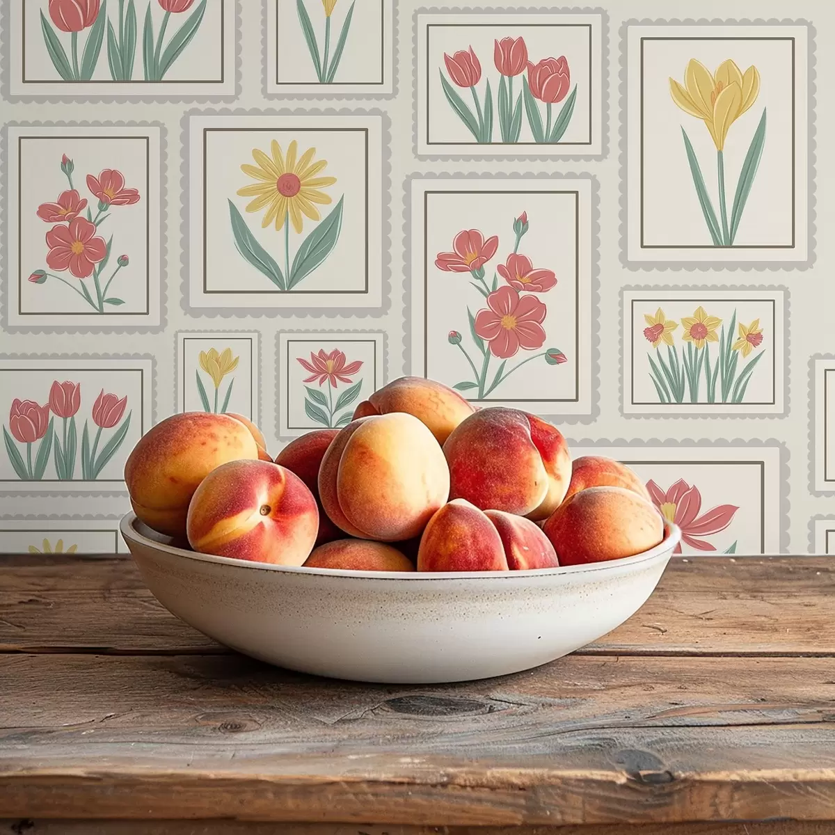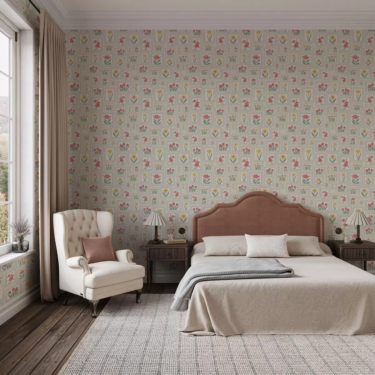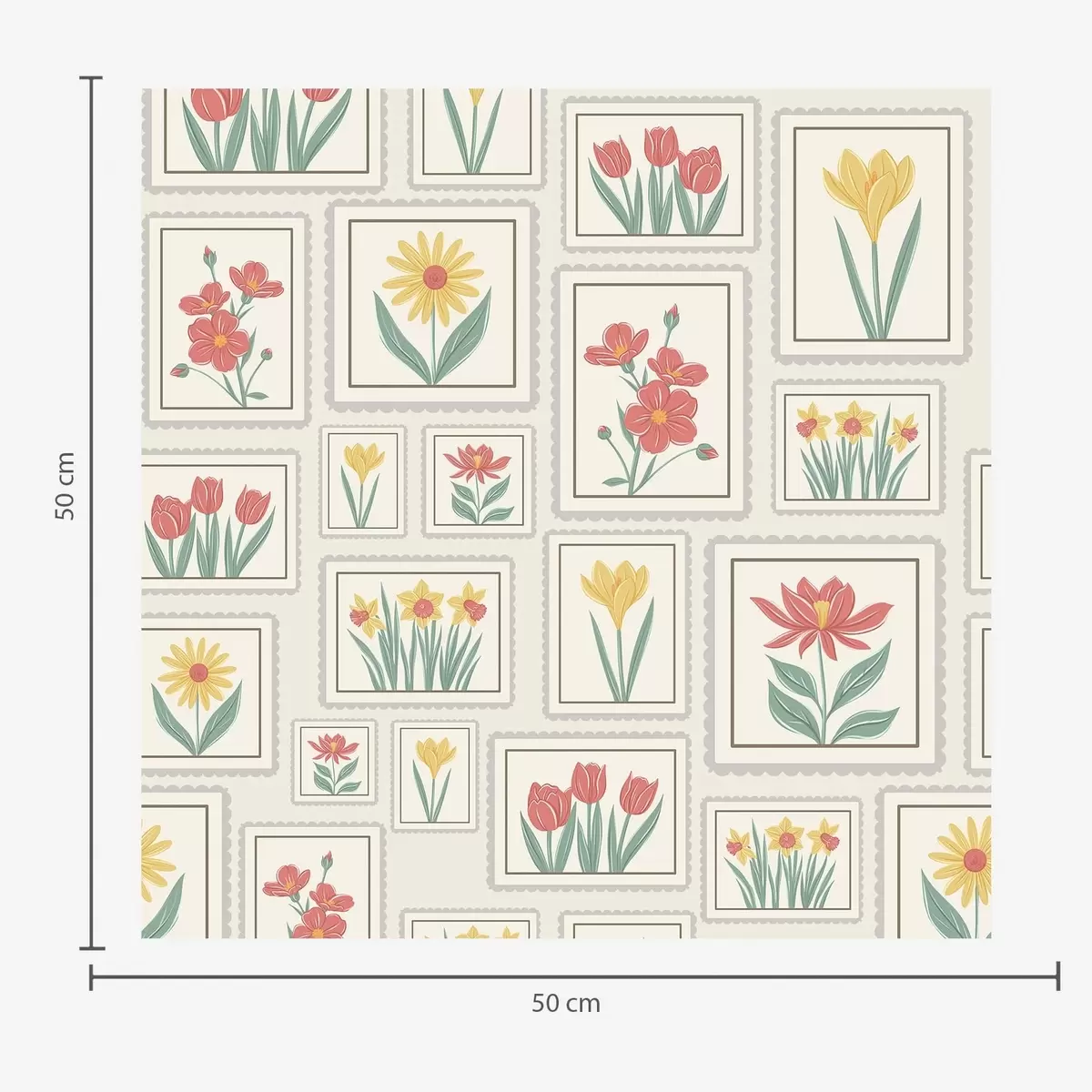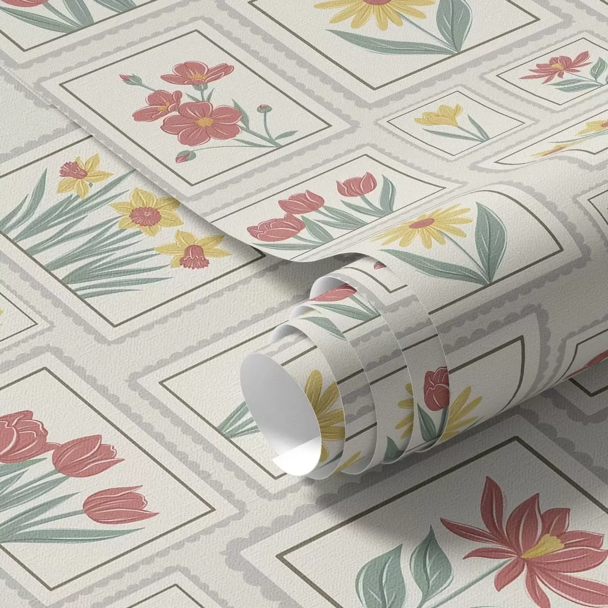 Tapetti Kehystetyt kukkakuvitukset vaalealla taustalla Nr. a01173v1