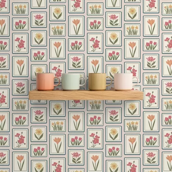 Tapetti Kehystetyt kukkakuvitukset, joissa on reunus Nr. a01174
