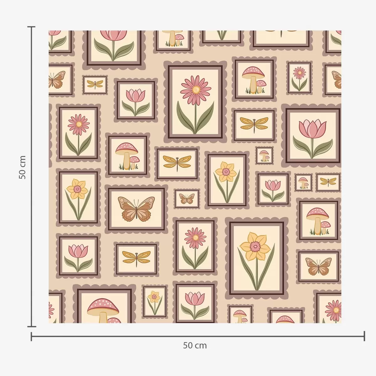 Tapetti Kehystetyt kuvitukset lämpimissä beigeissä sävyissä Nr. a01176v2