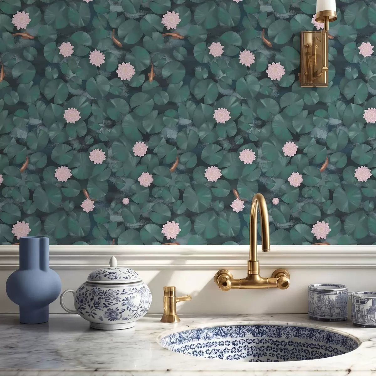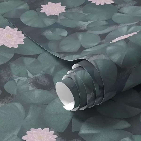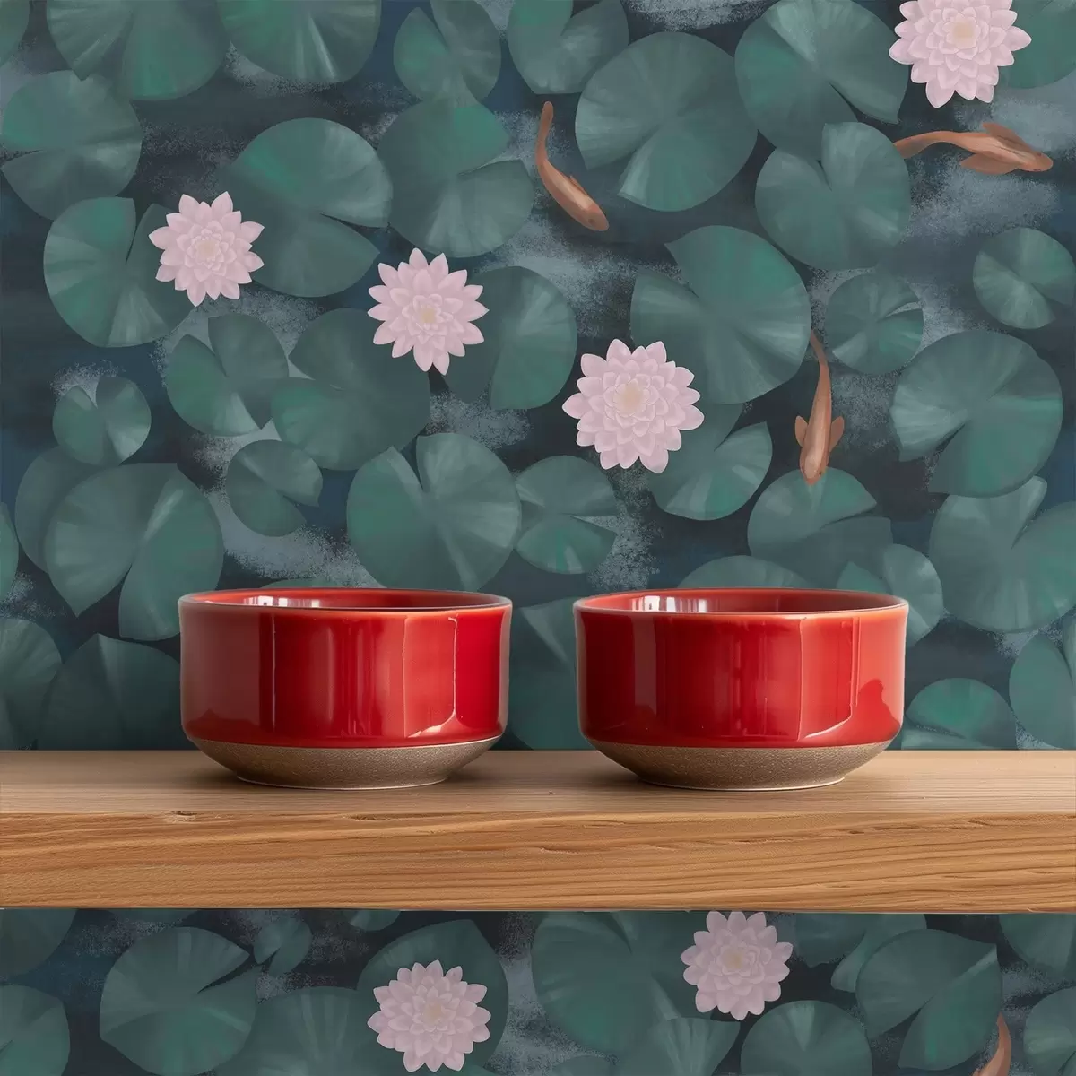 Tapetti Vesililjat, kukkia ja kaloja tummalla taustalla Nr. a01177