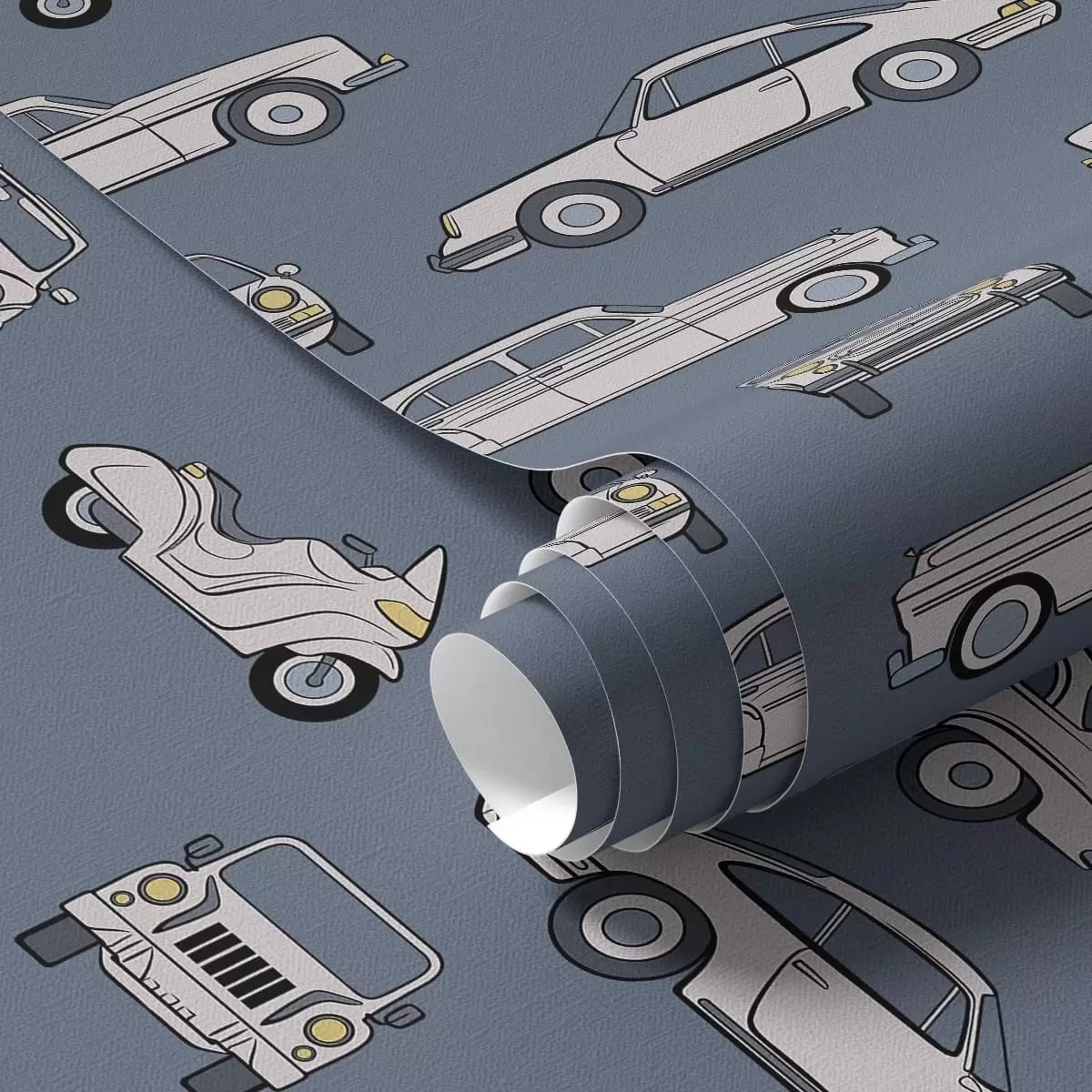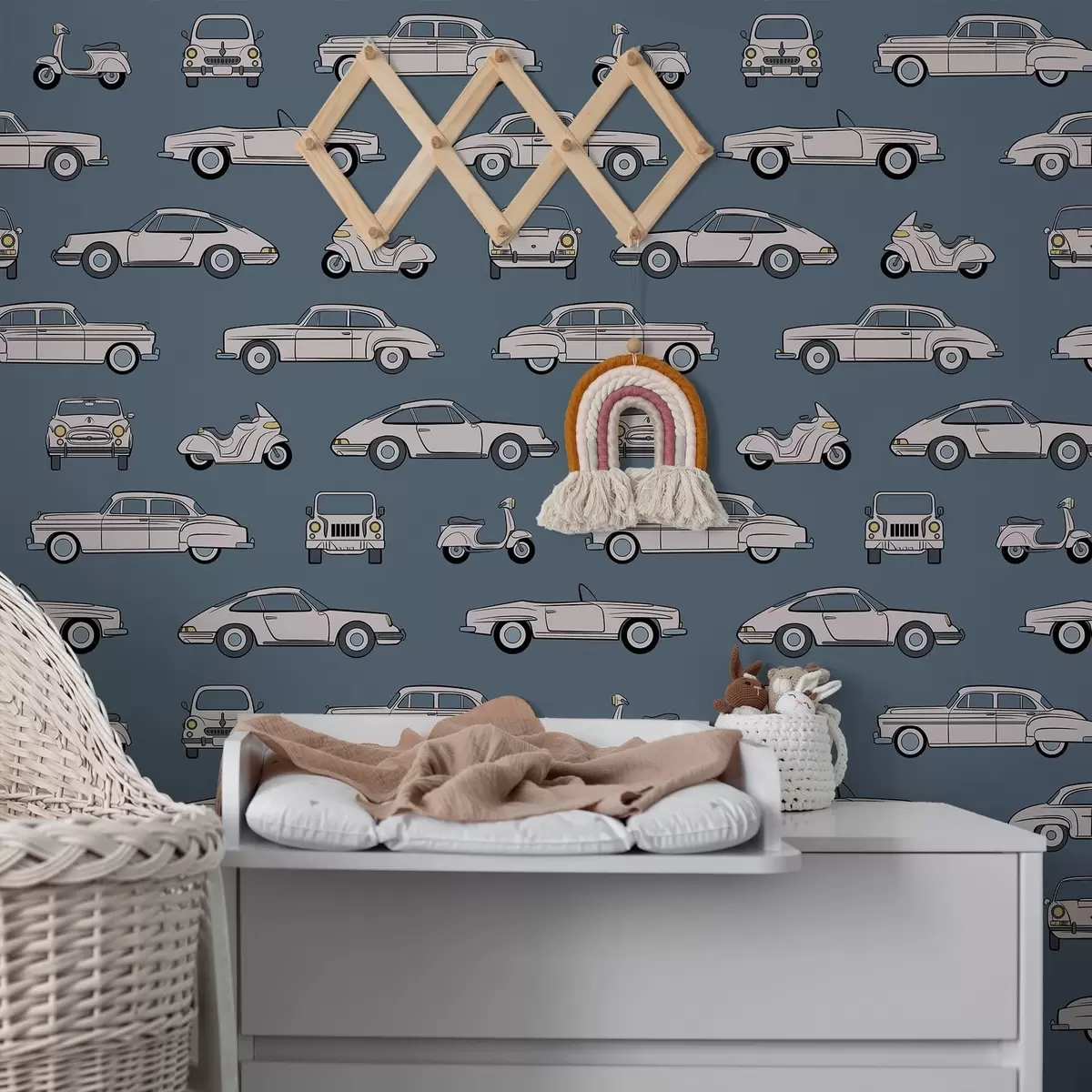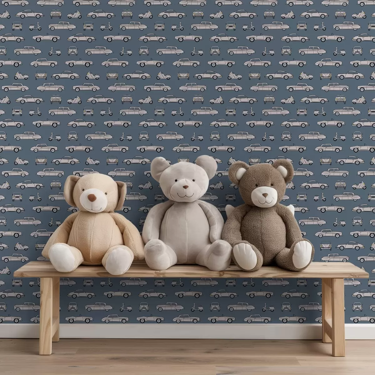 Tapetti Retroautot ja skootterit sinisellä taustalla Nr. a01178