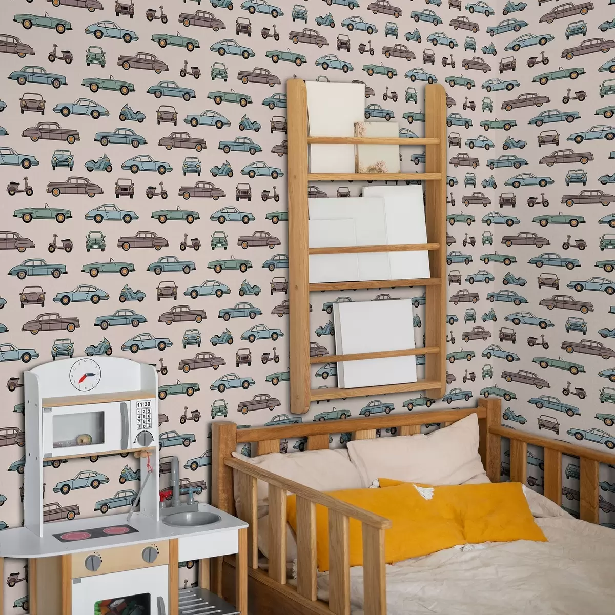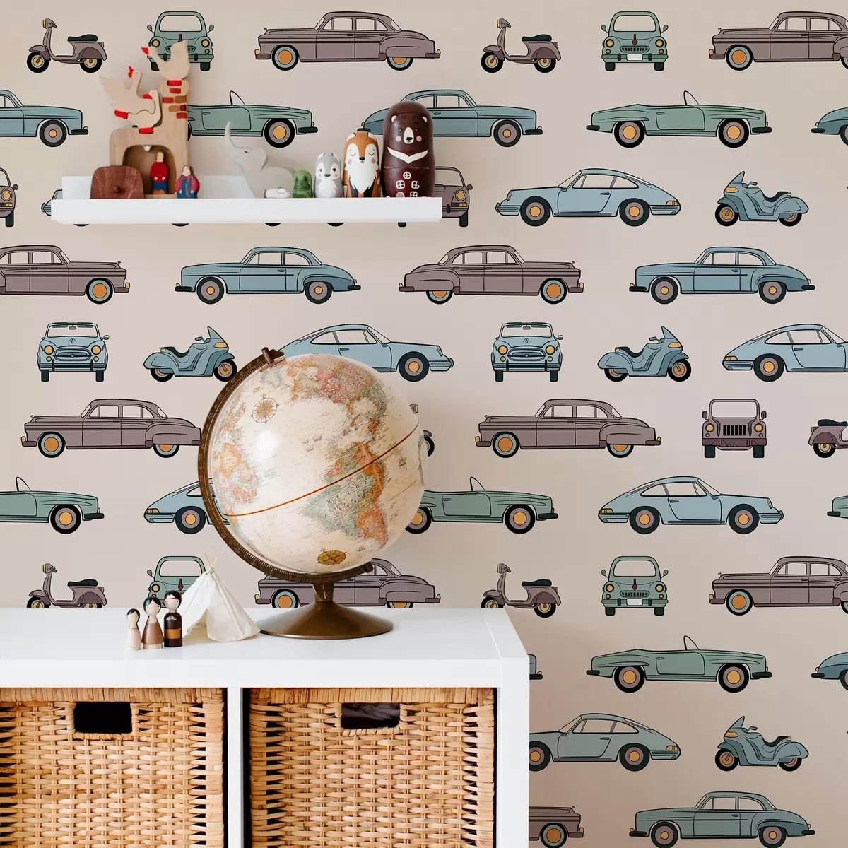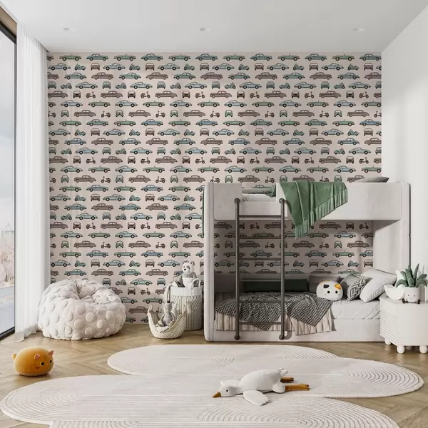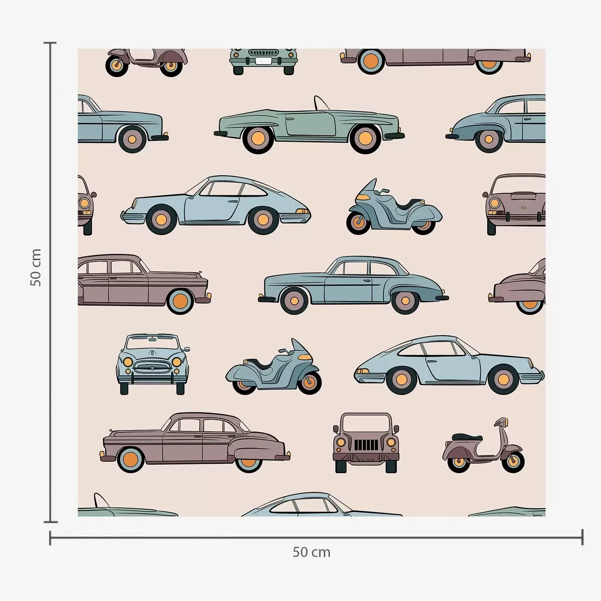 Tapetti Retroautot ja skootterit beigeä taustaa vasten Nr. a01178v1