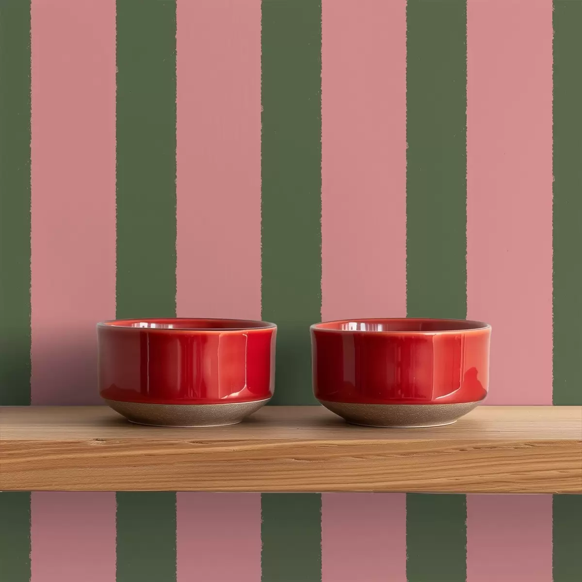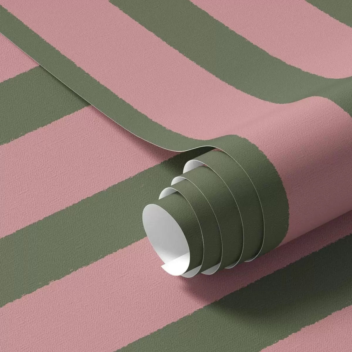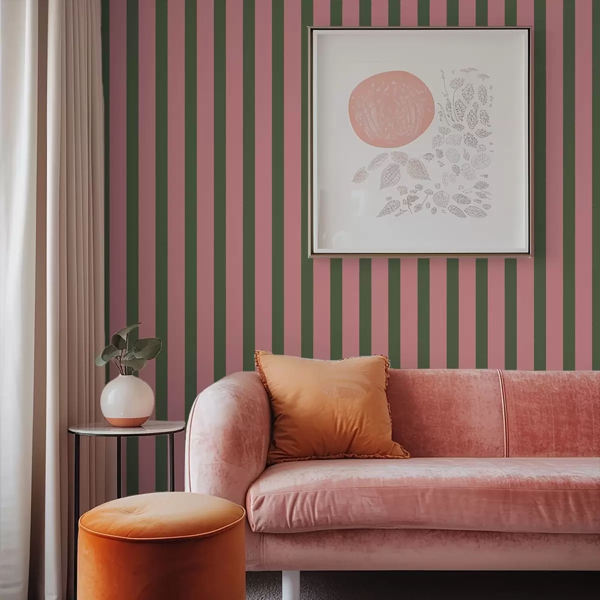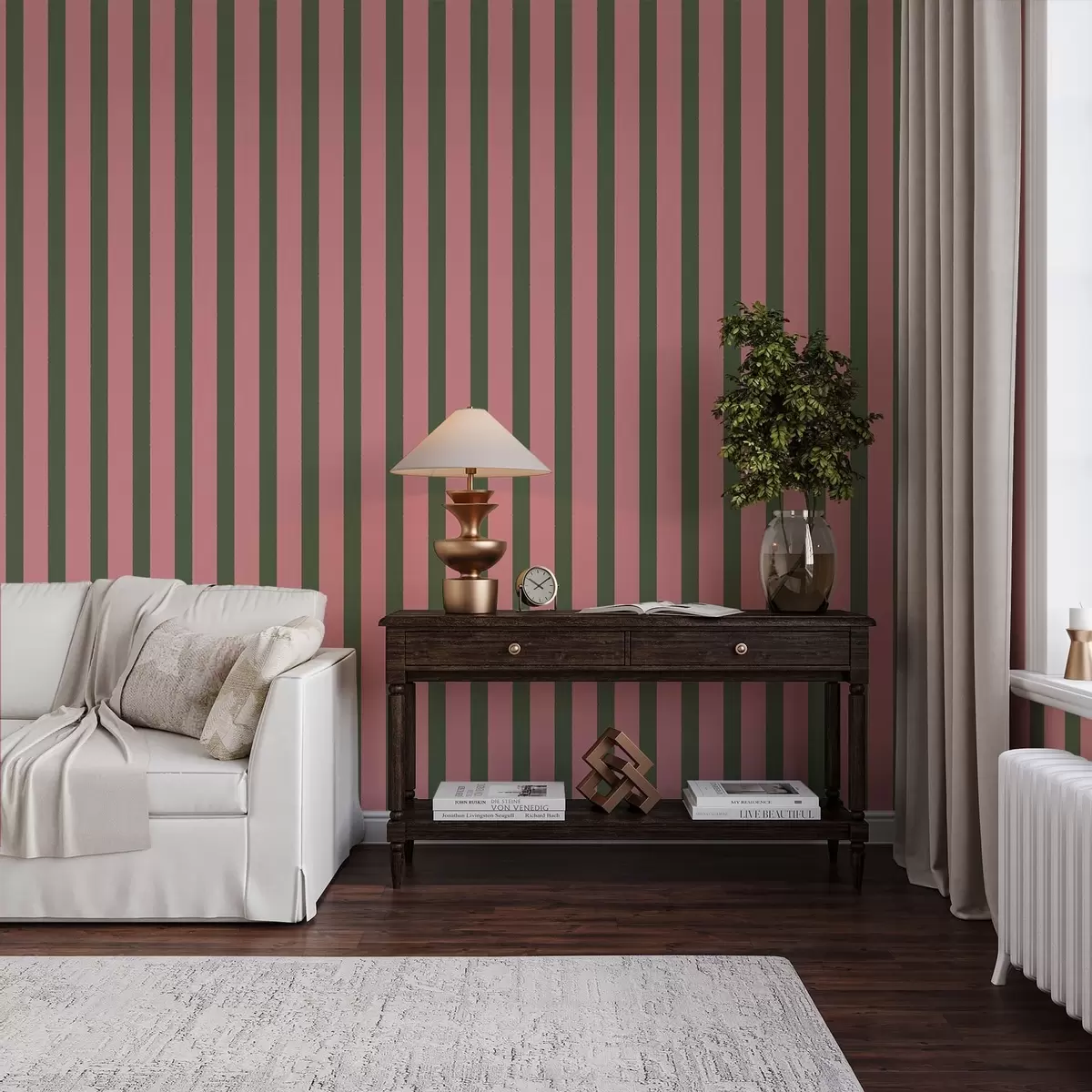 Tapetti Vaaleanpunaiset ja vihreät pystysuorat raidat Nr. a01180v2