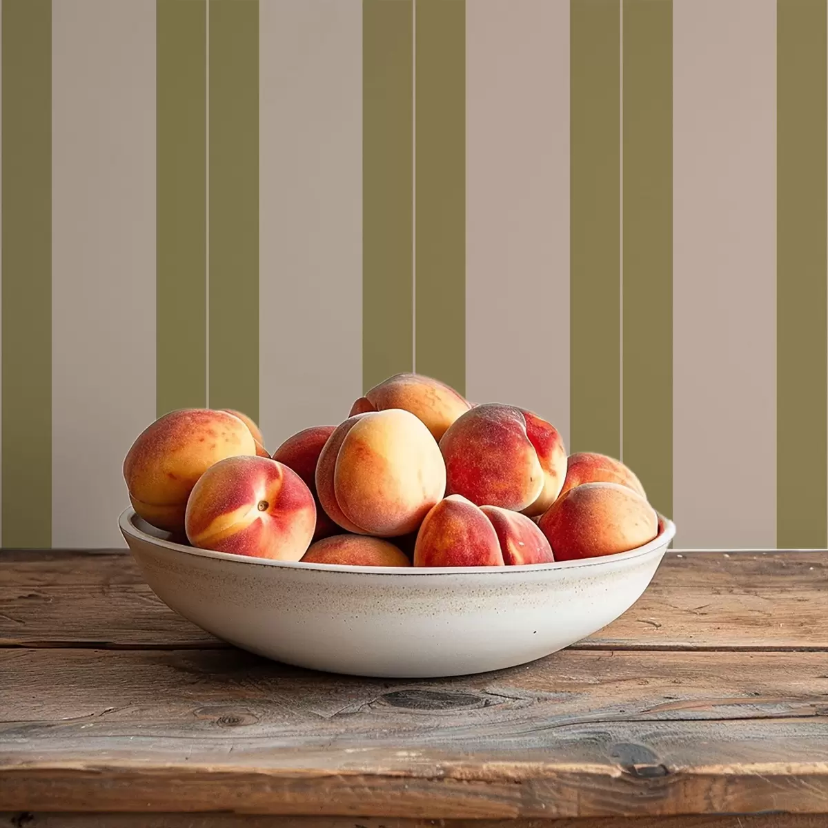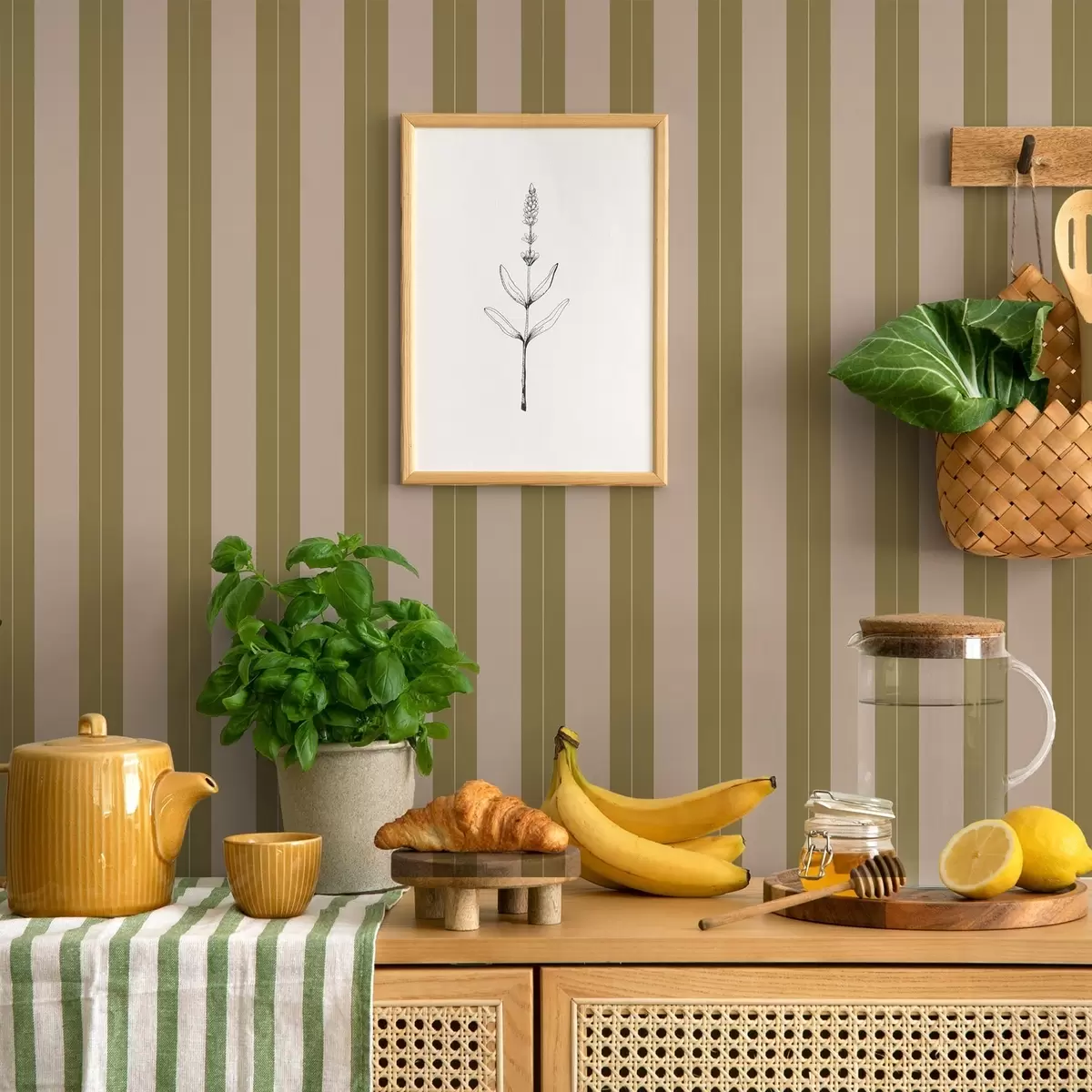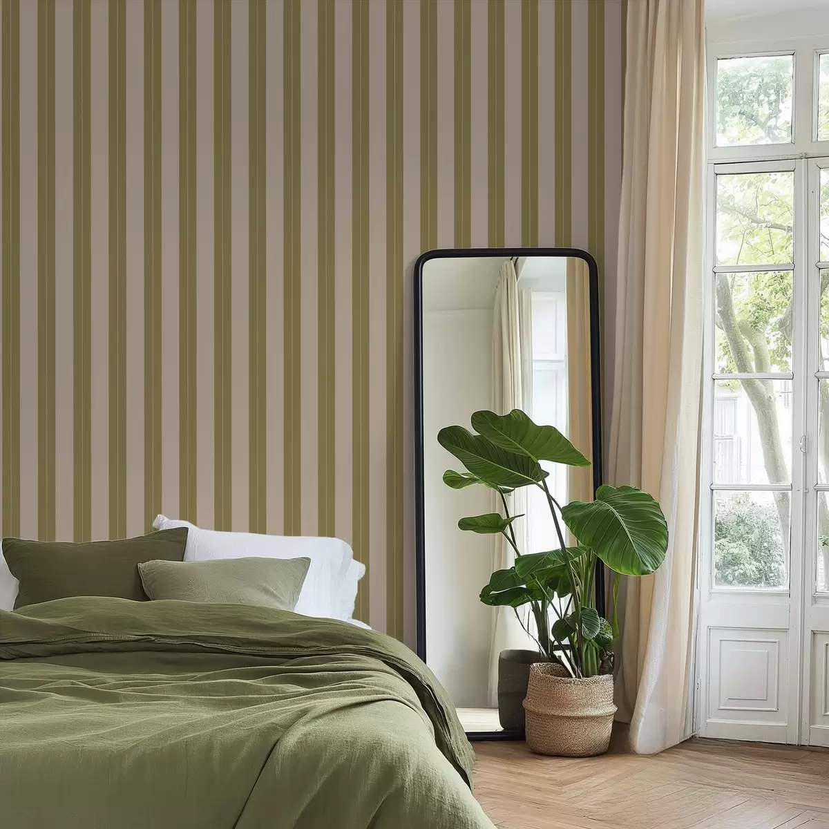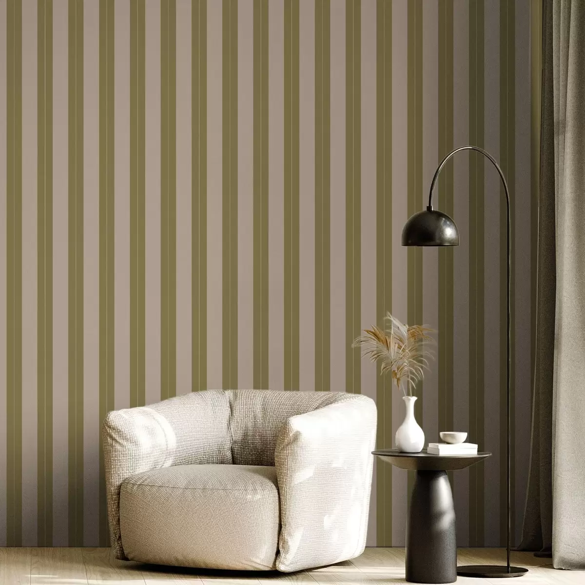 Tapetti Oliivinvihreät ja beigeä väriset pystysuorat raidat Nr. a01181v2