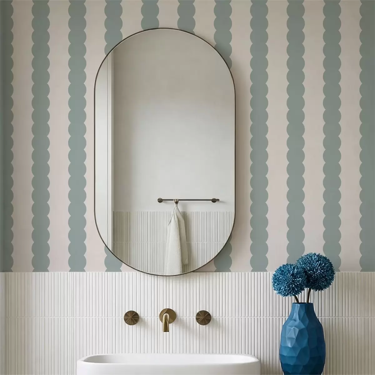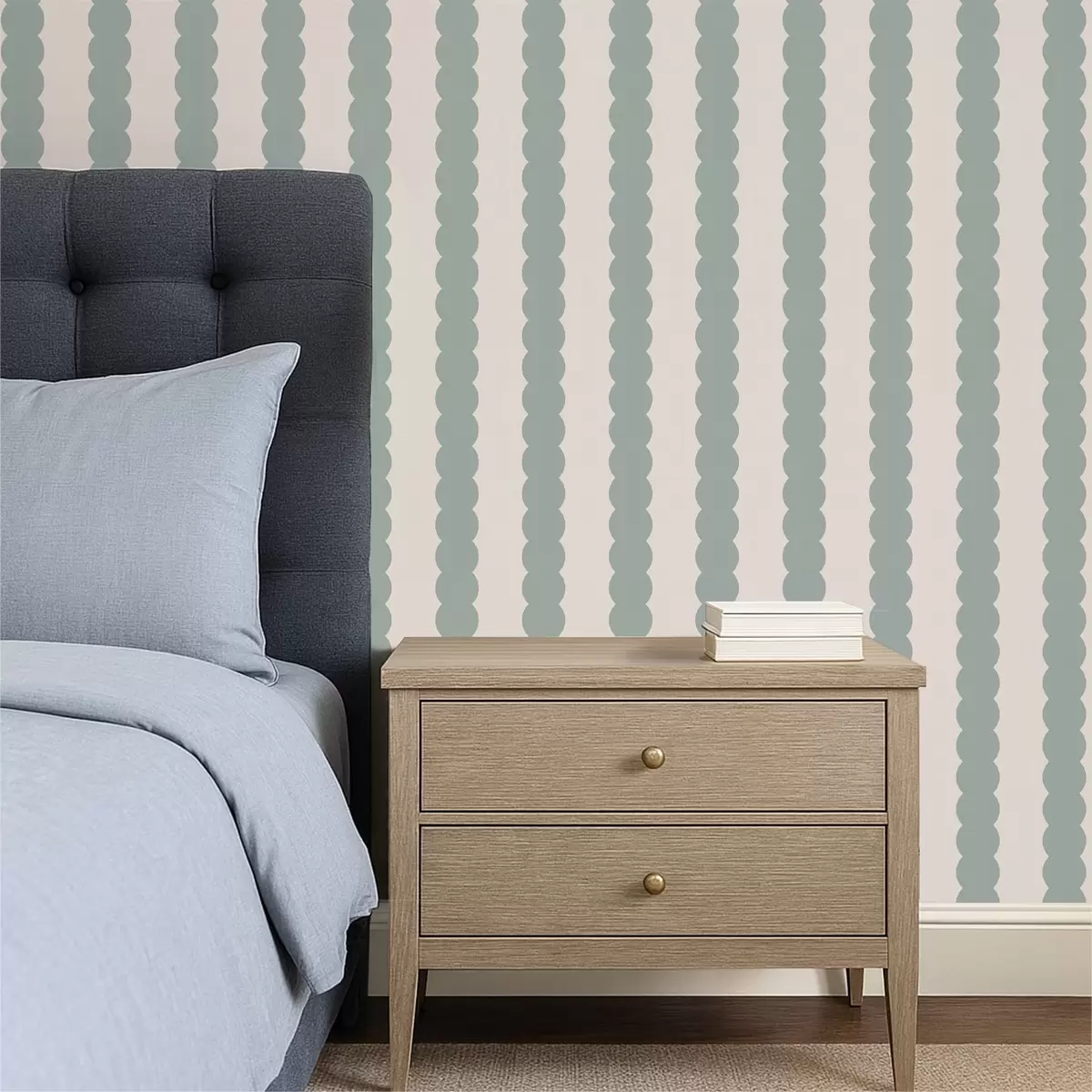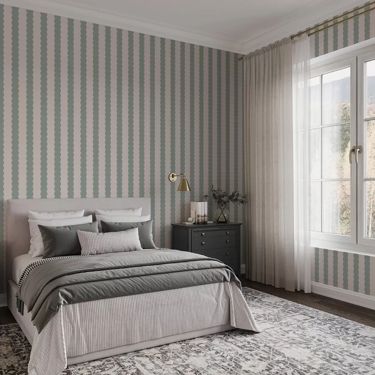 Tapetti Oliivinväriset aaltoilevat raidat minimalistisessa tyylissä Nr. a01182v1