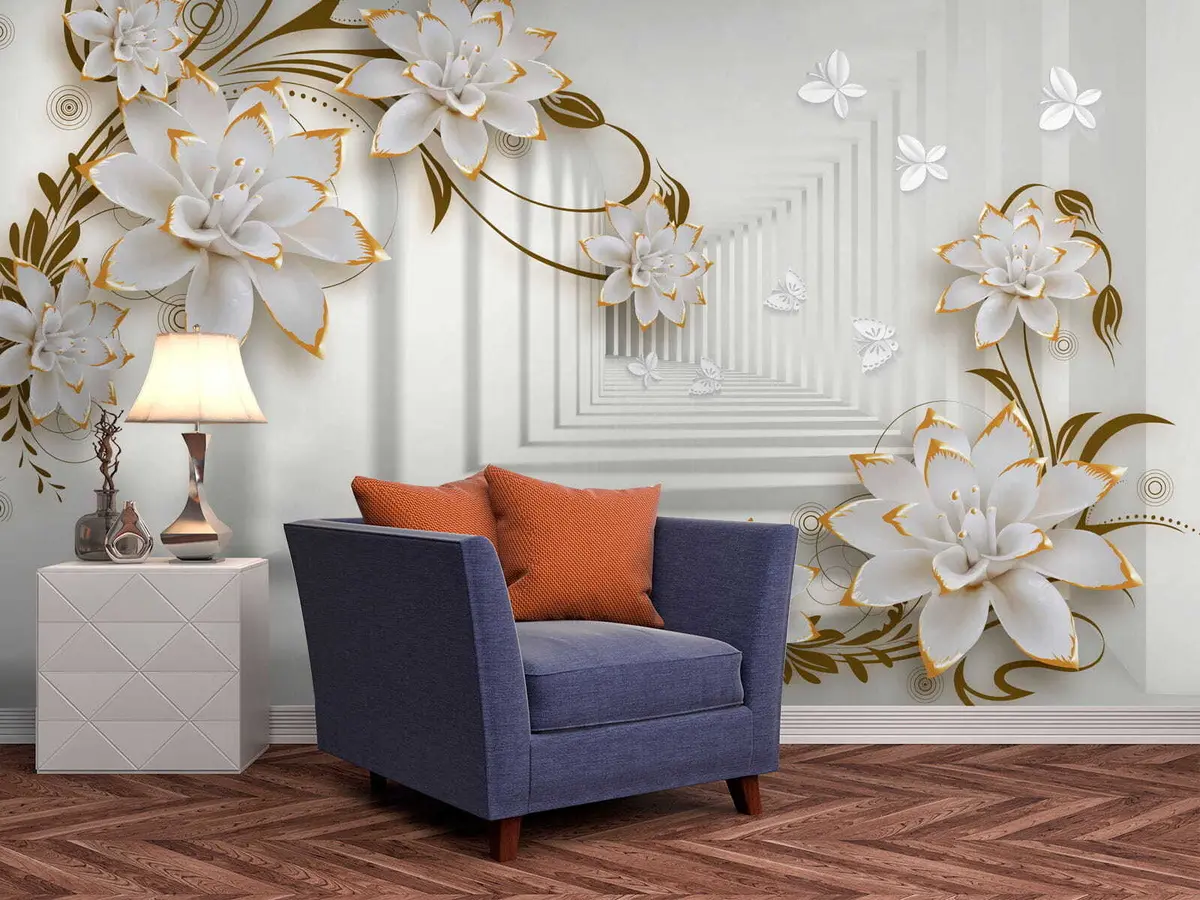 Valokuvatapetti Kukkia ja perhosia valotunnelissa Nr u47046