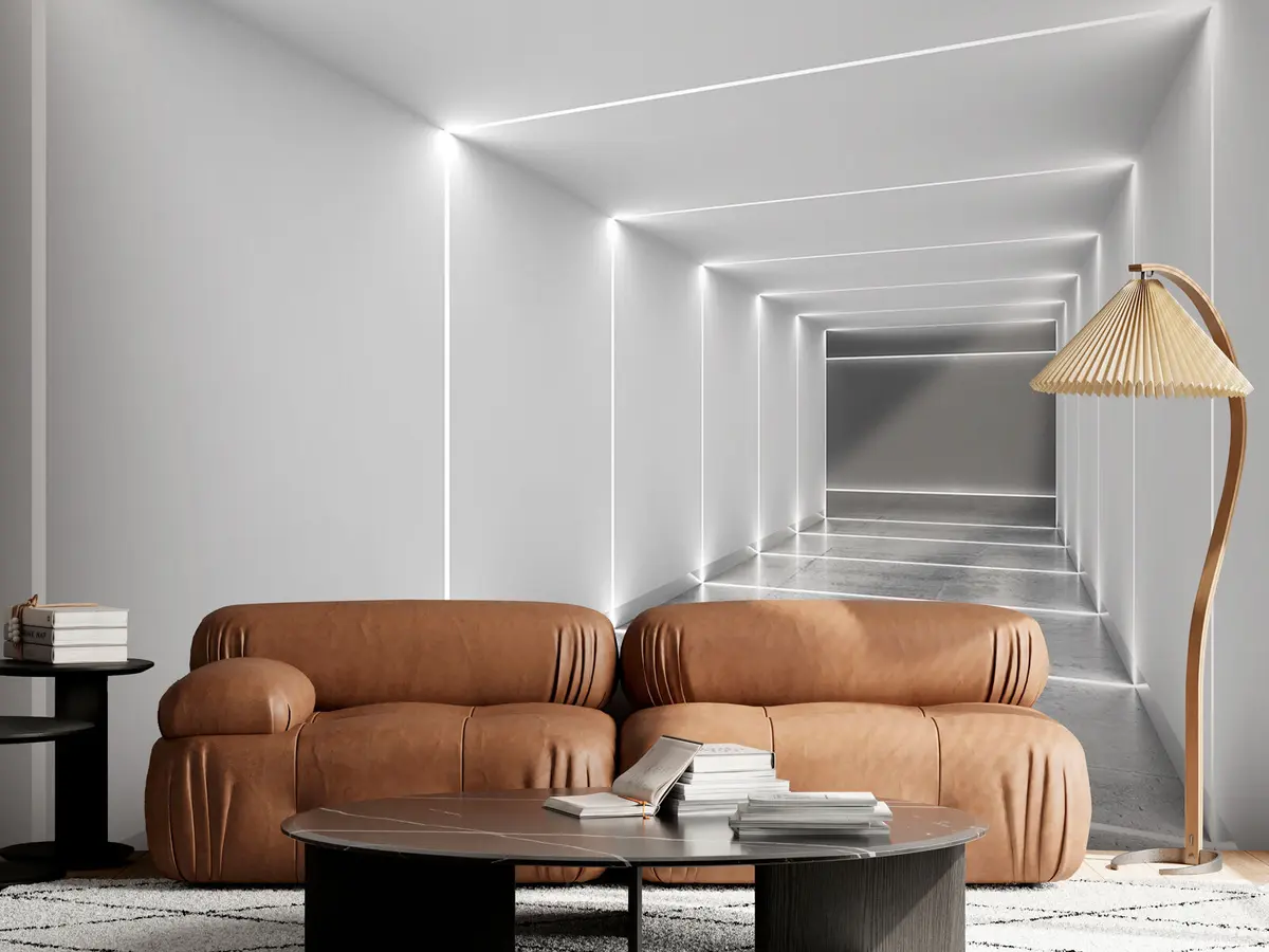 Valokuvatapetti Valkoinen tunneli kiillotetulla betonilattialla Nr u95075